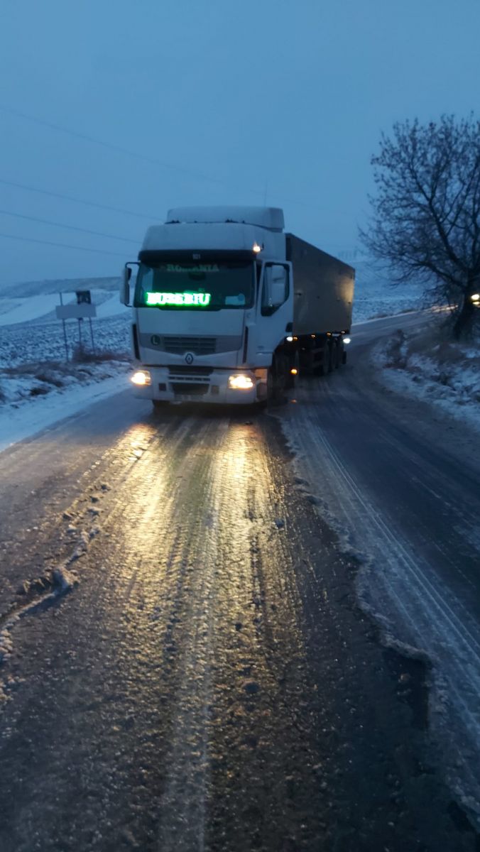”Am pățit din nou același fenomen și acum, pe Huțani, numai că acolo una dintre mașini mergea la încărcat și cealaltă se ducea în zonă și s-a deblocat repede. Carosabilul are - 3 grade, arunci o picătură pe ceva ce are  - 3 grade, se face instantaneu gheață”,