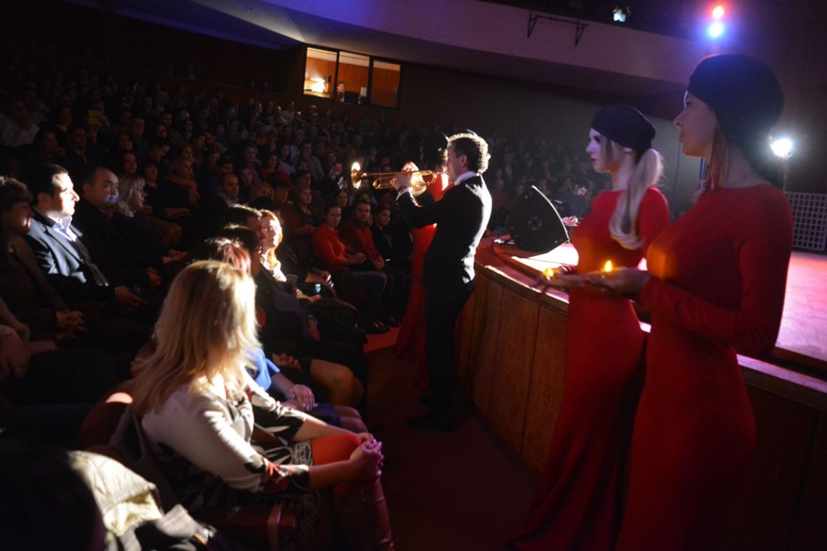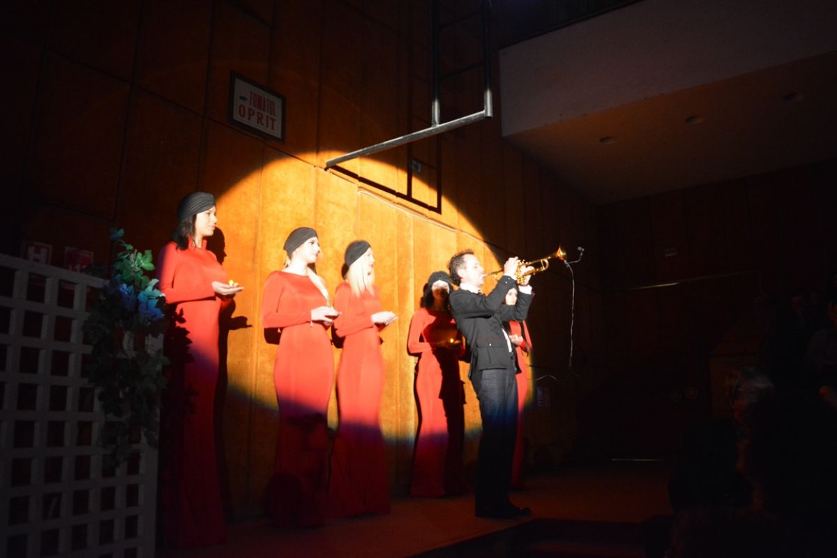 Întreg spectacolul a fost precedat de un moment surprinzător și emoționant, Mirel Manea cu a sa trompetă, însoțit de cinci tinere cu rochii roșii și bandane, care purtau lumânări în mâini, intrând prin spatele sălii și trecând printre spectatori.