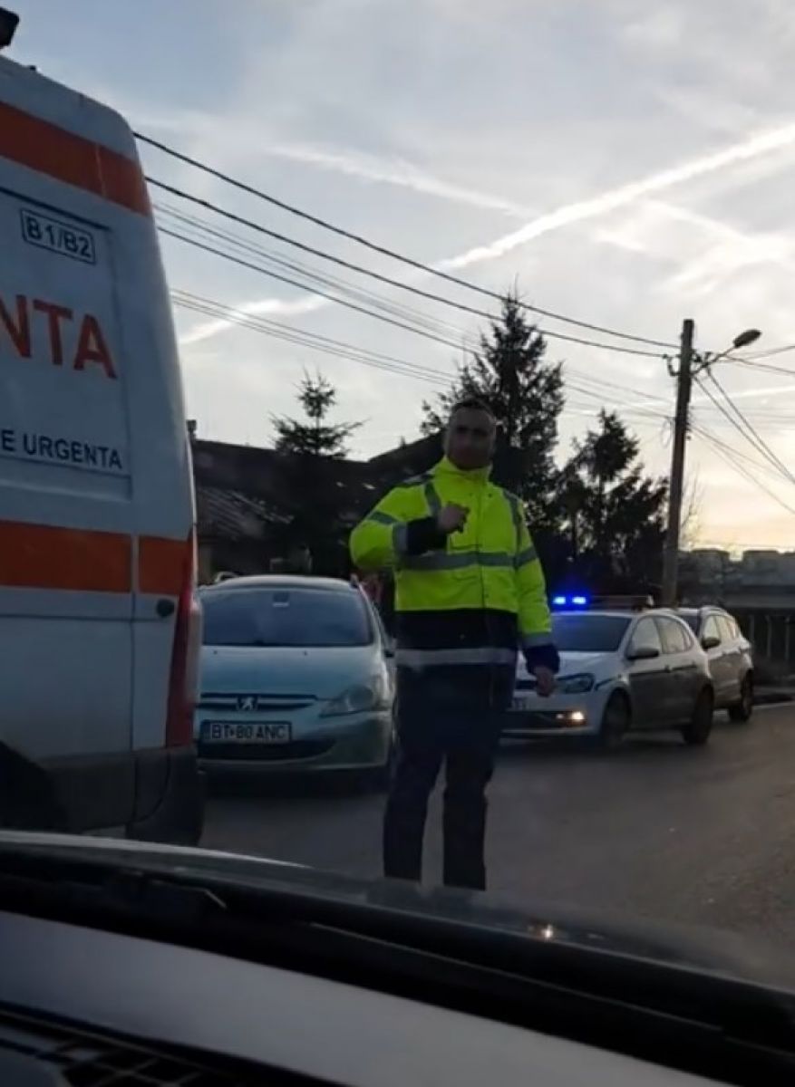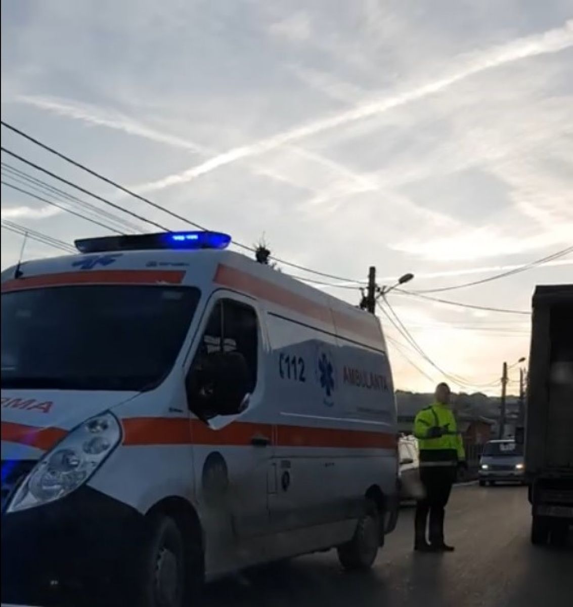 La fața locului s-au deplasat echipaje de la Poliție și Ambulanță, o persoană fiind rănită ușor.