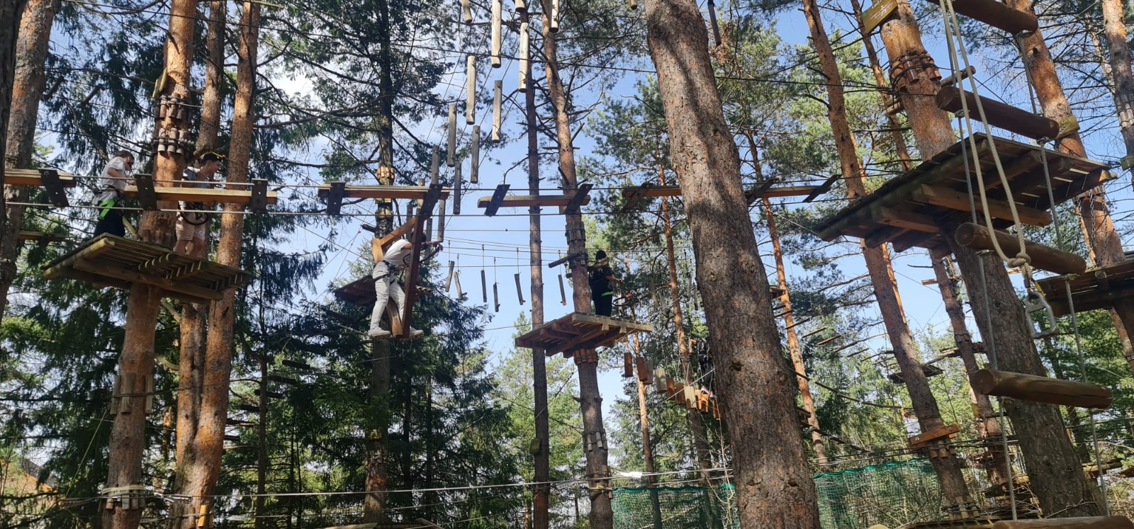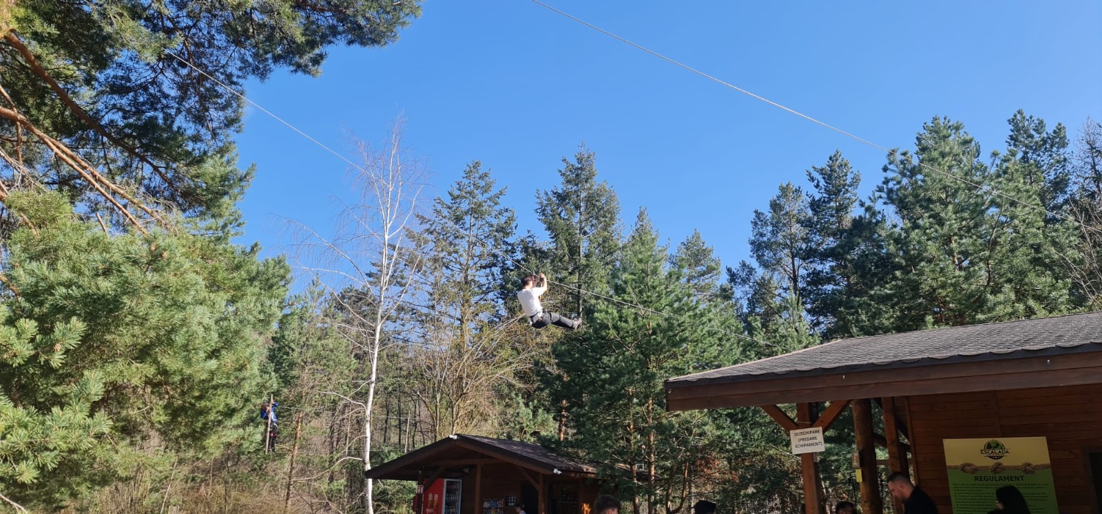 Distracția a fost la înălțime atât la Mega Tiroliana Bucovina - cea mai lungă tiroliană din România și Europa, top 5 în lume, cât și în Parcul de aventură Escalada din Gura Humorului - trasee cu tiroliene și obstacole.