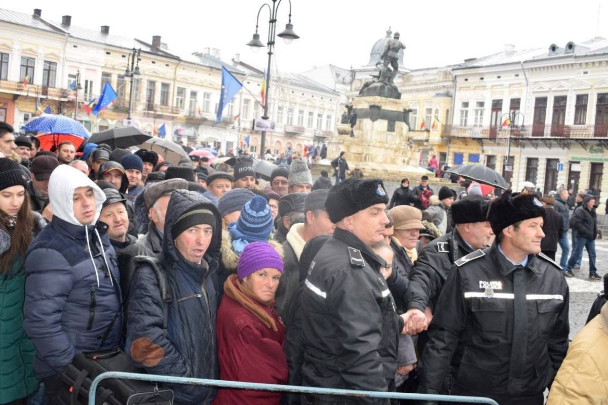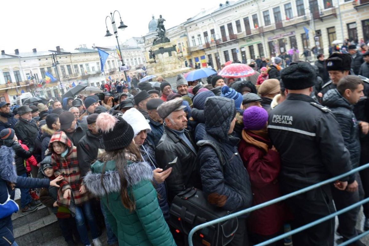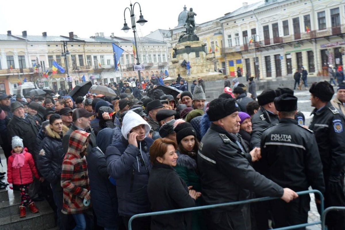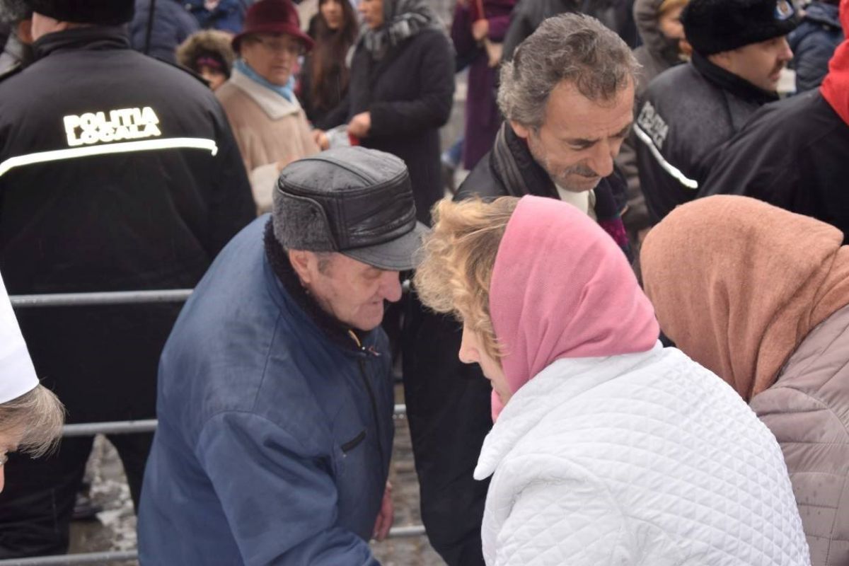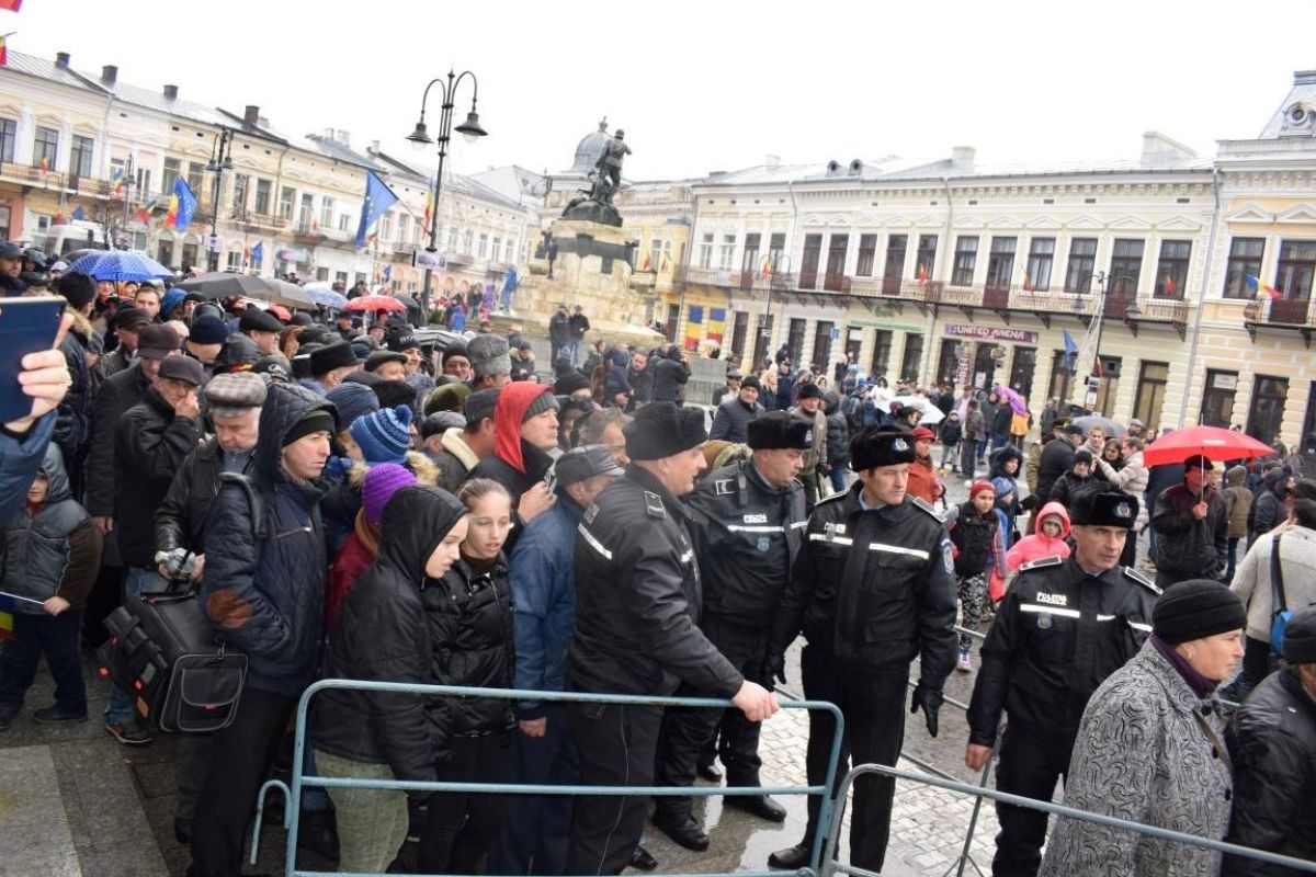 Botoșănenii mai pofticioși s-au așezat la coadă încă din timpul ceremonialului de depunere a coroanelor. Alții care au ajuns mai târziu, în special bătrânii, expediați la coadă de forțele de ordine, au renunțat la mâncare, descurajați de numărul însemnat de persoane care aștepta la rând.