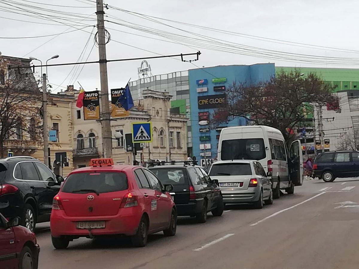 Un microbuz care circulă pe Traseul 5 s-a defectat astăzi în jurul orei 11:00 pe Calea Națională, chiar lângă trecerea de pietoni vis a vis de Romarta.
