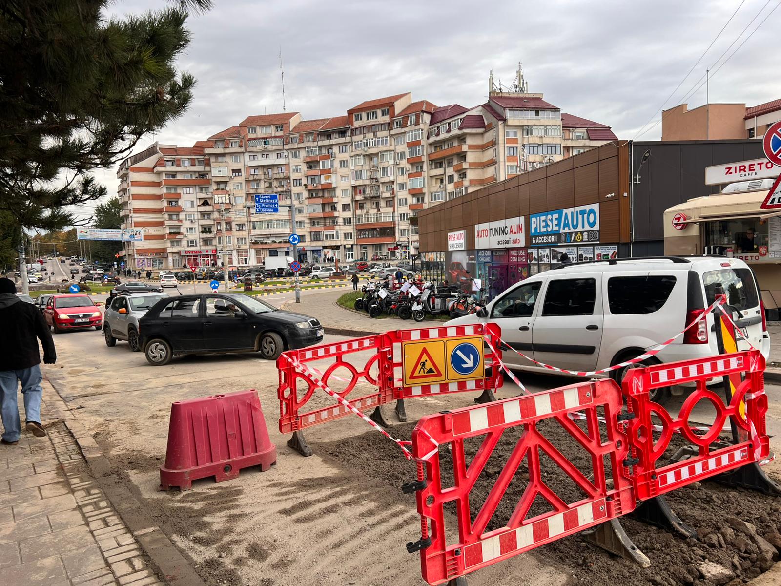 În zonă se produc ambuteiaje din cauză că șoferii care vin din sensul giratoriu către Nicolae Iorga trebuie să ocolească locul împrejmuit.