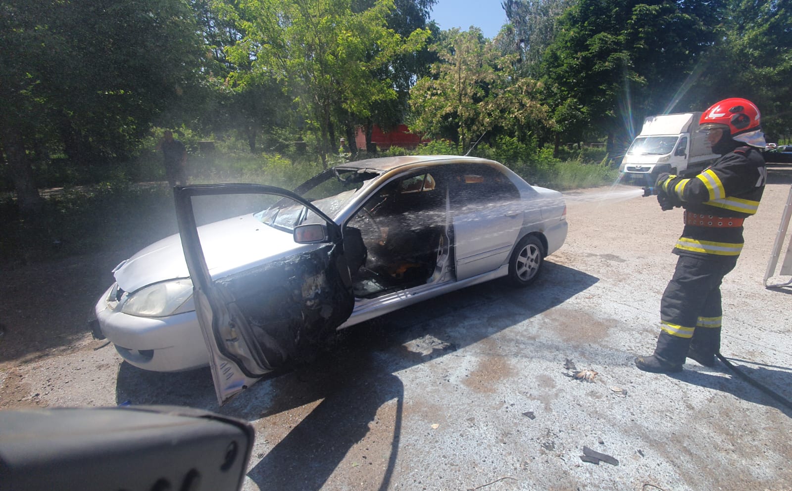 Din nefericire, din interiorul mașinii a fost extras un bărbat, cu arsuri pe toată suprafața corporală.