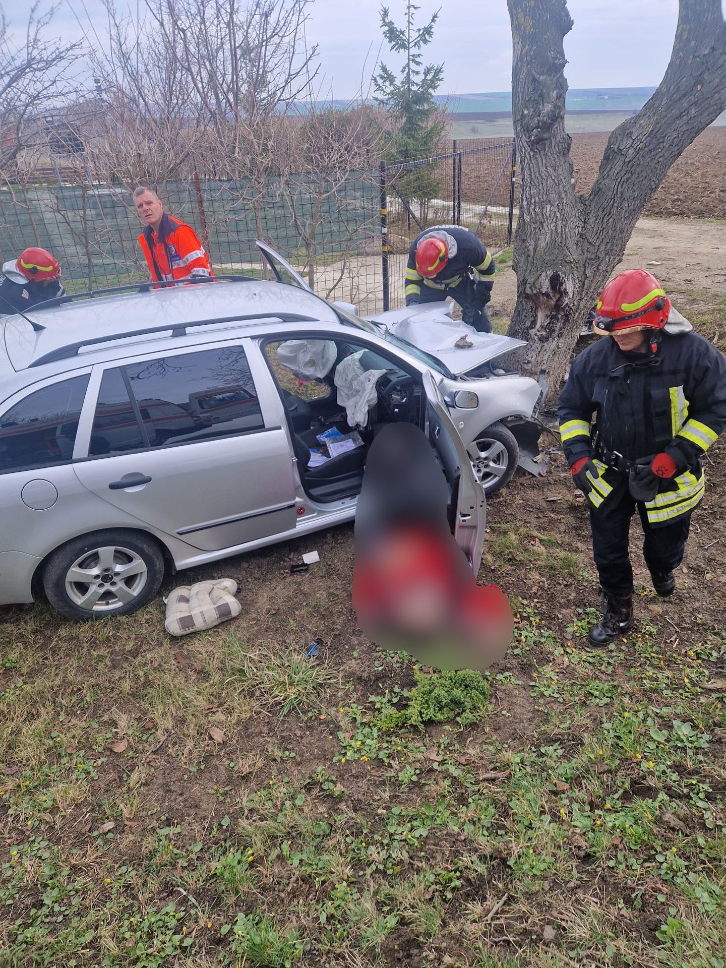 În eveniment a fost implicat un singur autoturism care a părăsit partea carosabilă și s-a izbit într-un copac de pe marginea drumului.