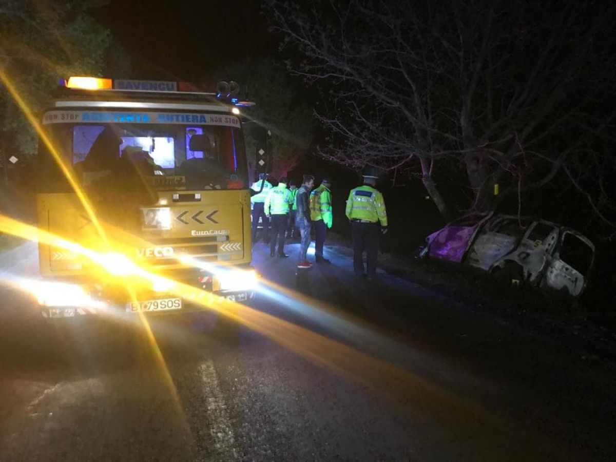 Accidentul rutier s-a petrecut pe drumul național care duce spre Vama Stânca. Bărbatul se afla la volan când a izbit puternic un copac. În urma impactului, mașina a luat foc. Era o Toyota care a ars ca o torță cu tot cu arbore.