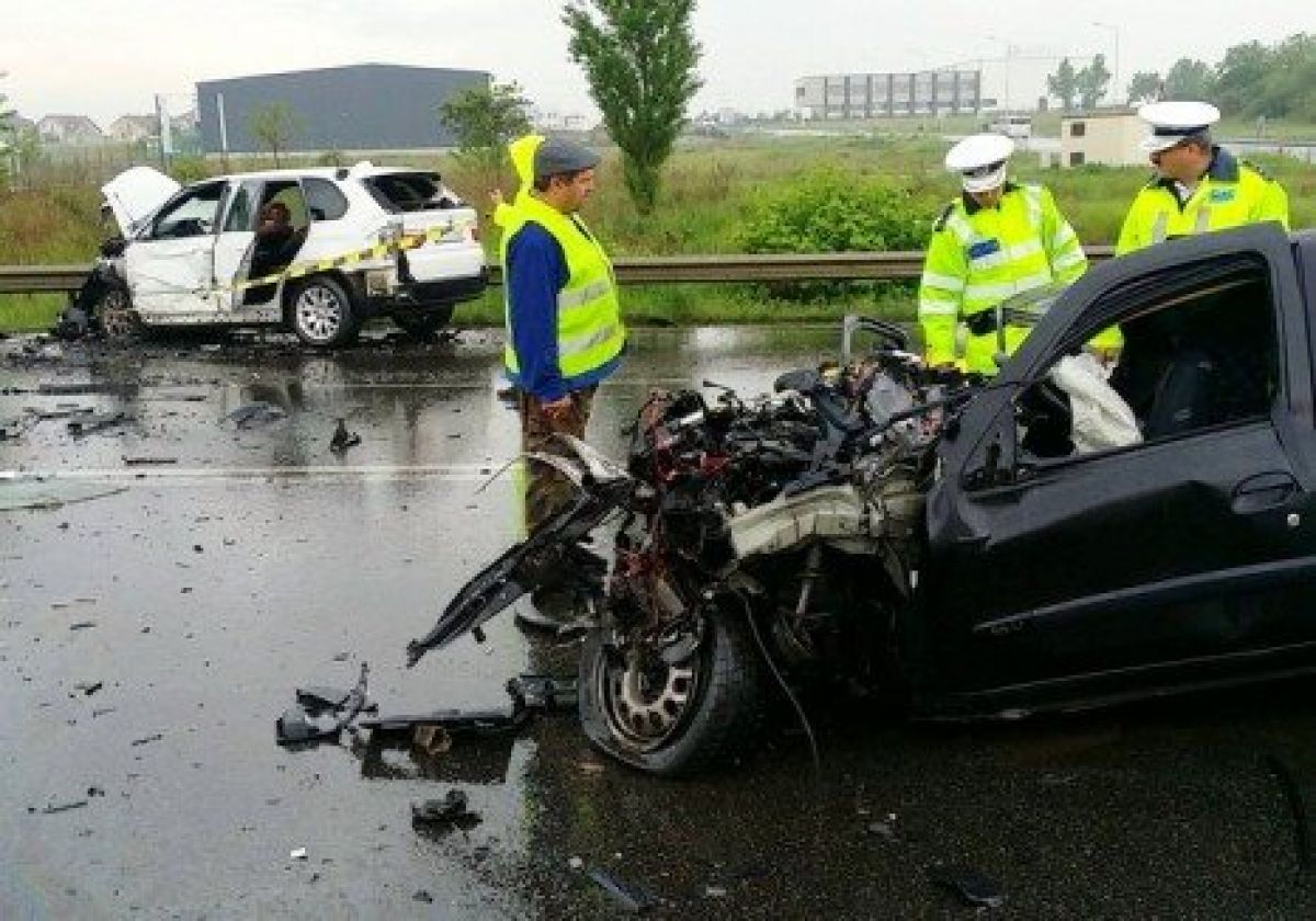 Imaginile de locul accidentului sunt impresionante. Cele două maşini s-au lovit frontal şi au, ambele, boturile făcute praf, numeroase elemente de caroserie fiind împrăştiate pe o rază de zeci de metri împrejur.