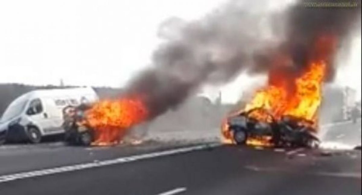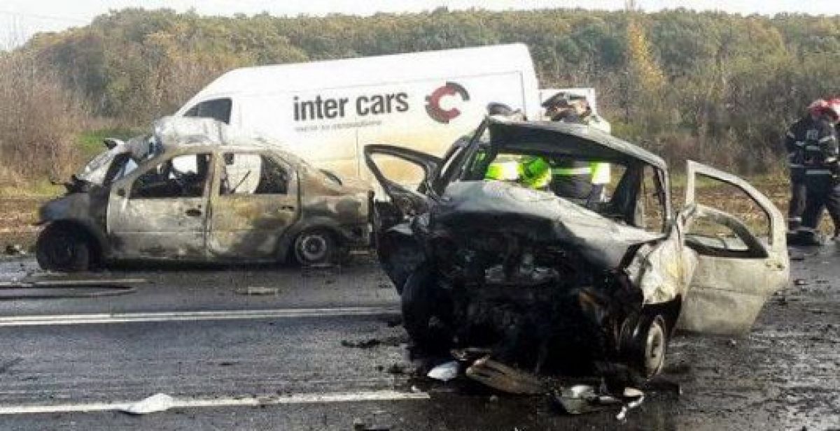 În urma impactului, două dintre cele trei maşini implicate în accident au luat foc, precizează Centrul Infotrafic.