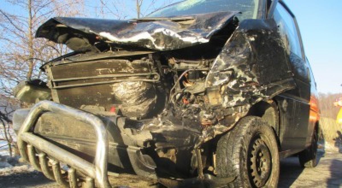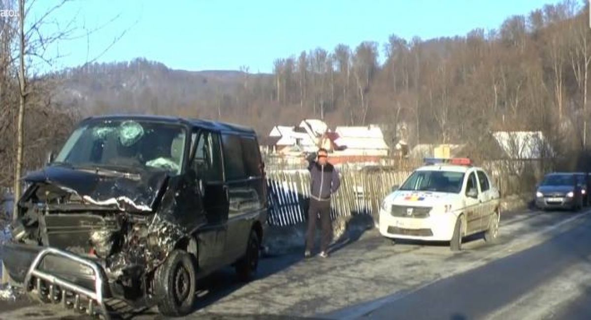 O autoutilitară înmatriculată în Suceava, deplasându-se spre Pipirig, nu a redus viteza de deplasare într-o curbă la dreapta și a pătruns pe contrasens intrând în coliziune frontală cu autoutilitara.