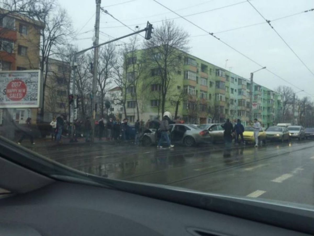 Accidentul a avut loc, în weekend, în zona Podu Roș din Iași. Șoferul unui bolid a intrat în plin într-o mașină, după ce a trecut pe culoarea roșie a semaforului. Apoi, a acroșat alte patru mașini. Fără să-i pese de nenorocirea pe care a provocat-o, tânărul a plecat de la locul accidentului.