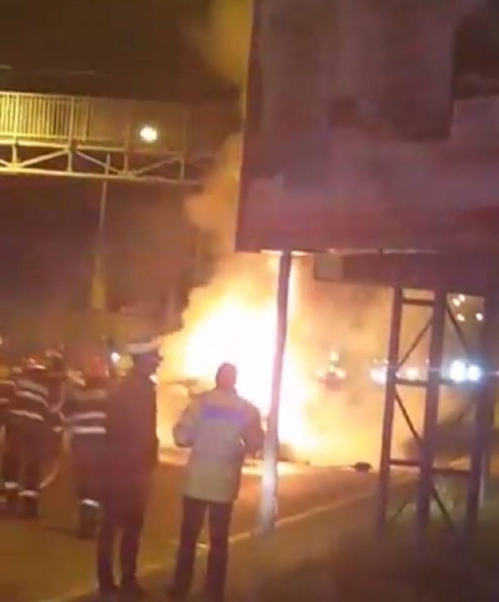 Conform primelor informaţii, şoferul a pierdut controlul volanului, a intrat cu maşina într-o pasarelă pentru pietoni, iar autoturismul a luat foc. Din păcate, şoferul a rămas încarcerat şi a fost găsit carbonizat. Imaginile surprinse de cei aflaţi în acea zonă atunci sunt absolut şocante.