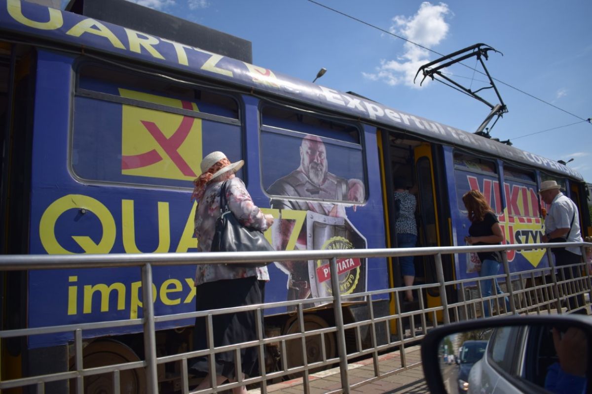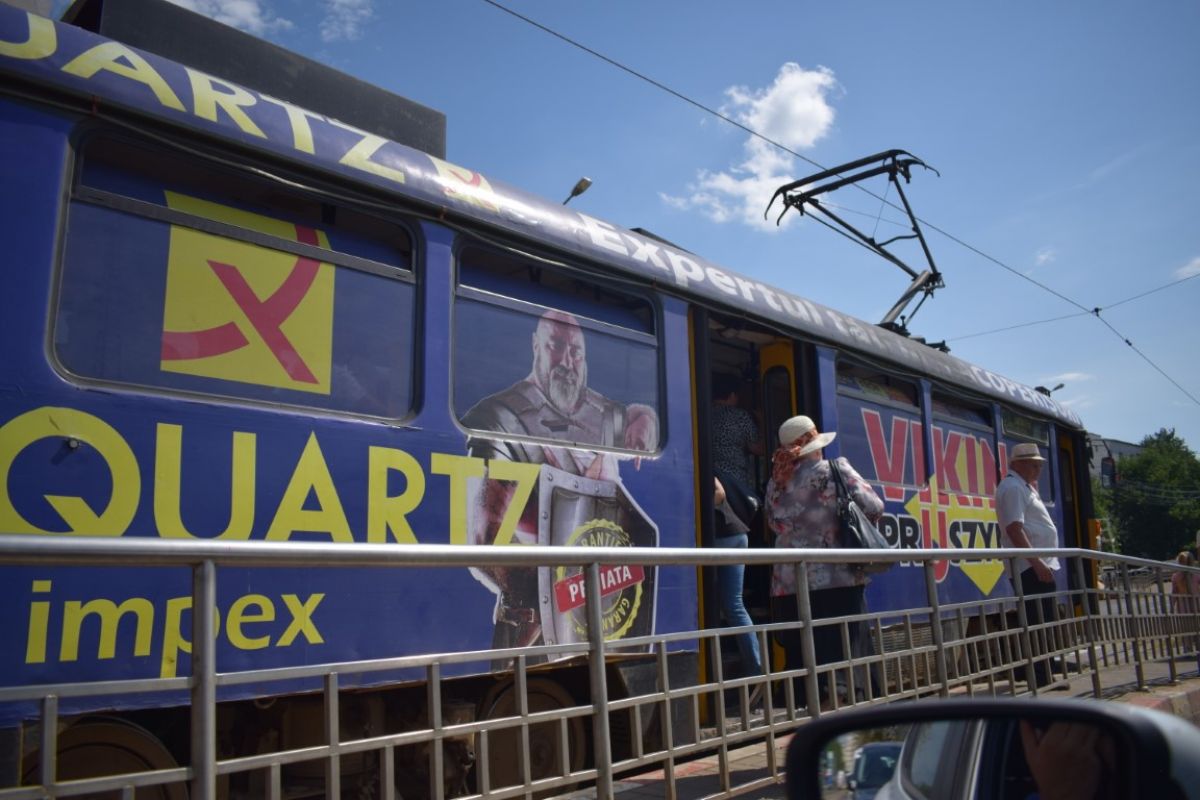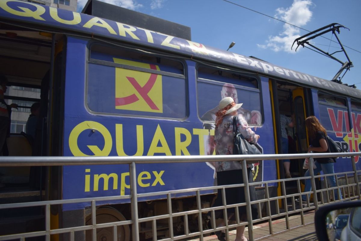 Pentru o reclamă care este amplasată pe partea laterală a tramvaiului, inclusiv pe geamuri, polițiștii au considerat că este necesar să fie reținut certificatul de înmatriculare.