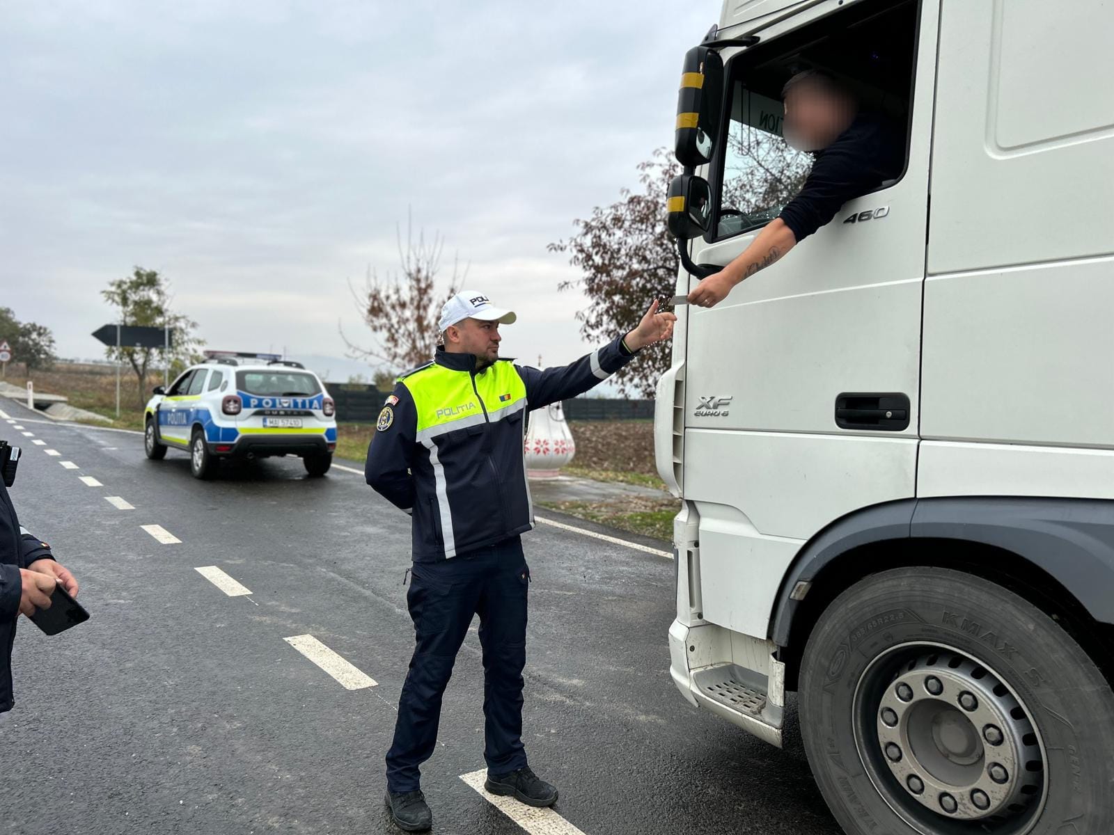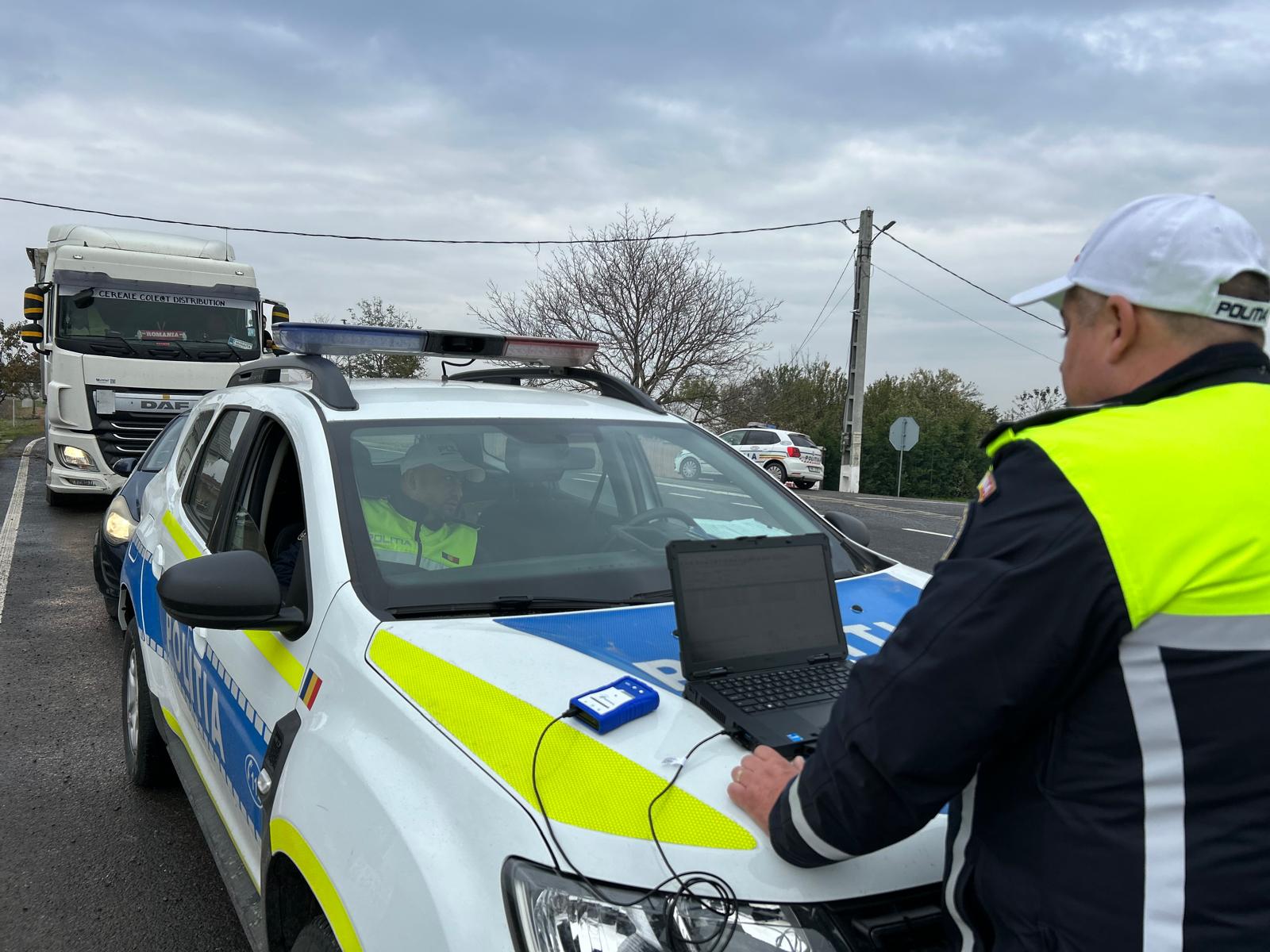 Mai mulți transportatori au fost opriți la Botoșani de către polițiștii rutieri și verifcați cu un aparat special.