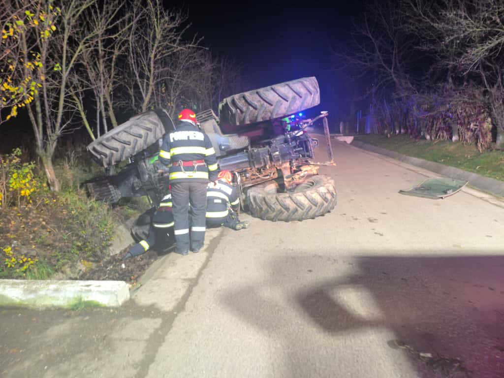 Trei bărbați au ajuns la spital după ce tractorul în care se aflau s-a răsturnat într-un șanț, în localitatea Suharău.