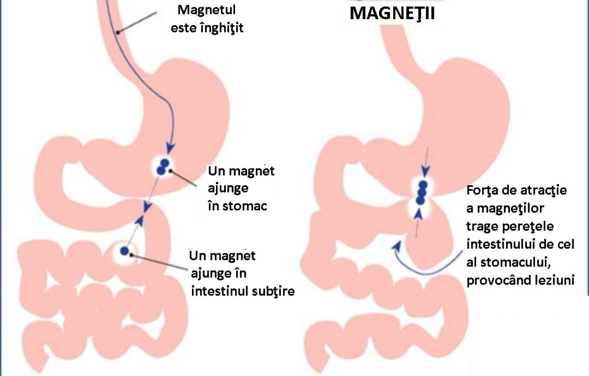„Acești magneți sunt foarte puternici, iar ingestia lor poate duce la probleme gastrointestinale grave. Odată înghițiți sunt atrași unul spre altul chiar dacă se găsesc în secțiuni diferite ale tubului digestiv. O ansă intestinală prinsă între acești magneți se poate perfora ducând la tratament chirurgical de urgență. În secția noastră, de la începutul anului s-au prezentat trei cazuri, două fete și un băiat, cu vârste cuprinse între 2 și 4 ani. Aceștia au suferit perforații la nivelul intestinului subțire și au necesitat intervenții pentru îndepărtarea porțiunii de intestin afectate”,