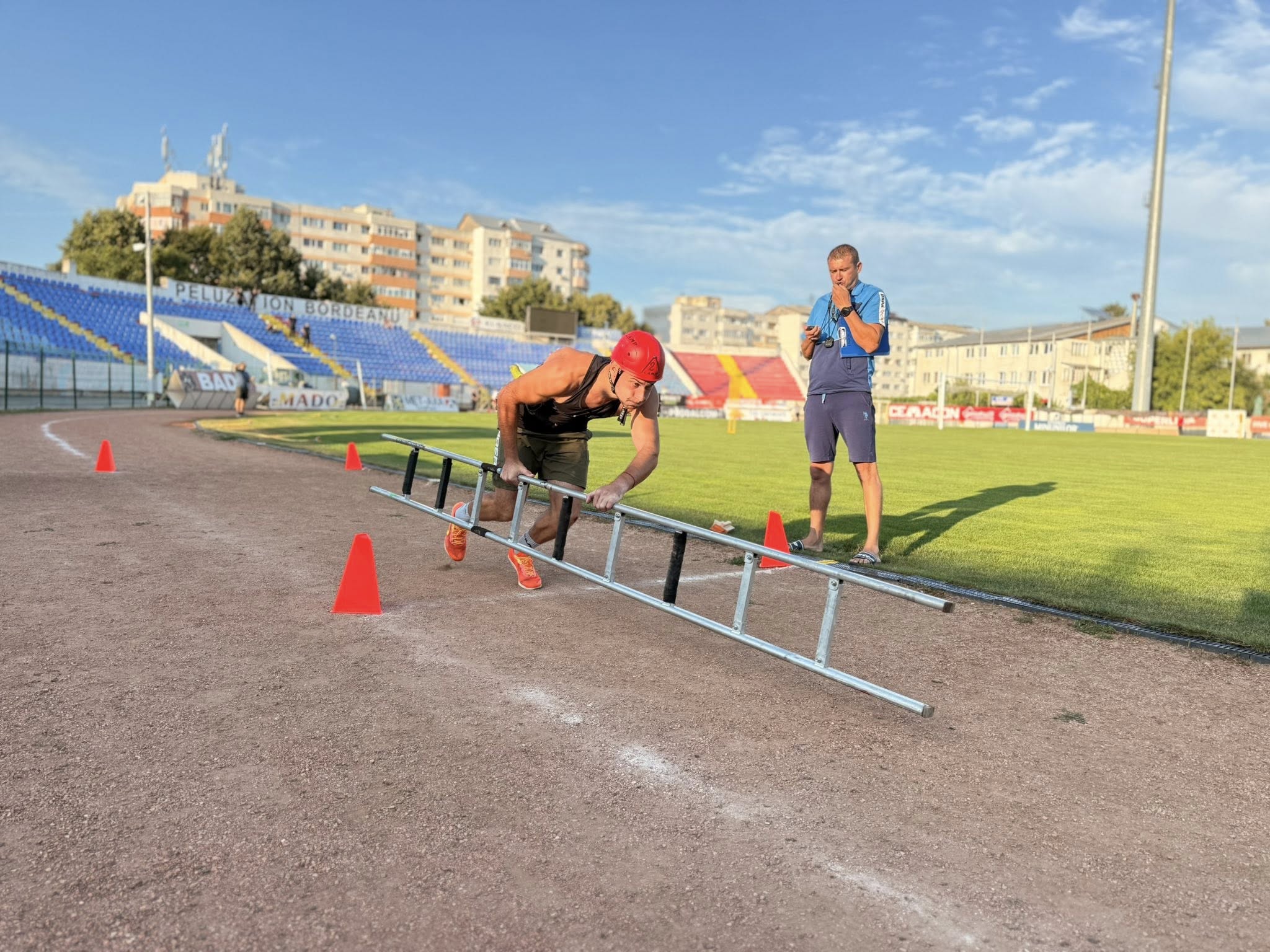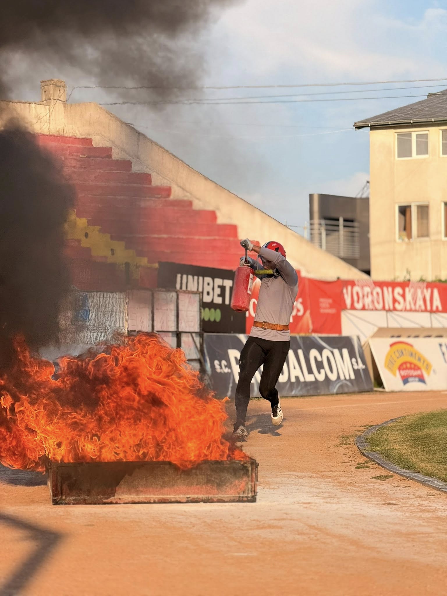 Această sesiune de antrenament este dedicată perfecționării tehnicilor specifice pompierilor și consolidării spiritului de echipă.