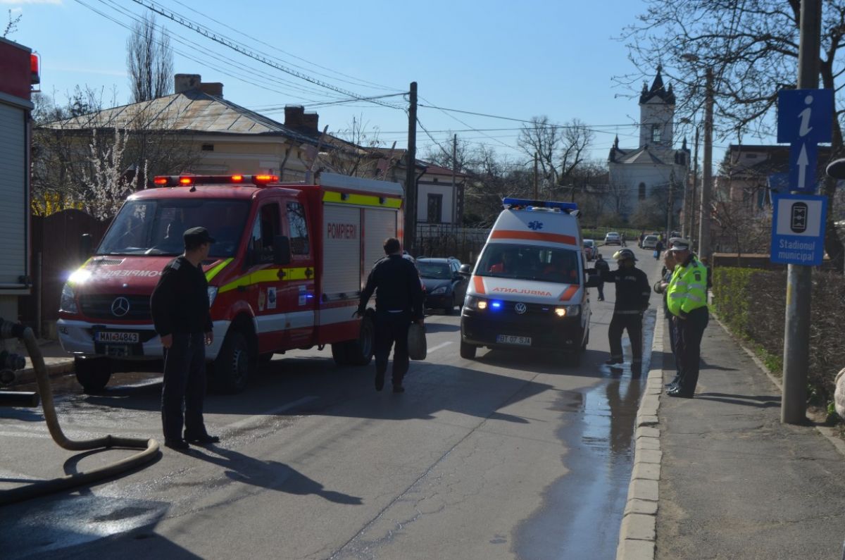 Intervenție de amploare a pompierilor botoșăneni sâmbătă după amiază pe strada Victoriei din municipiu, o zonă cunoscută ca fiind preponderent de case.