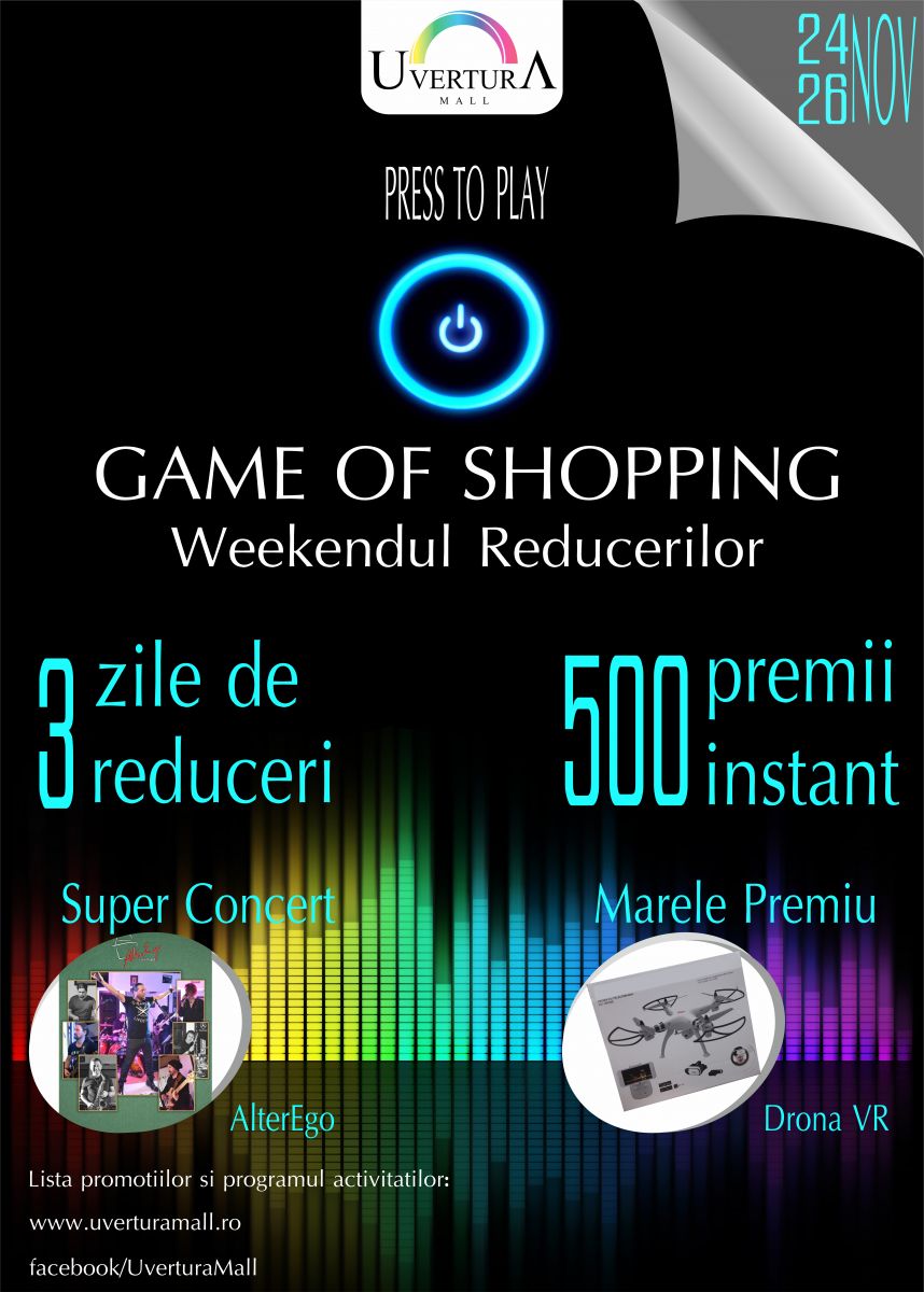 Cumparatorii fideli vor putea pleca acasa cu un premiu instant constand in diferite jocuri si accesorii, pentru cumparaturile de minim 100 lei efectuate pe tot parcursul weekendului, iar marele premiu – o drona Vr va fi acordata la finalul campaniei celui mai norocos client.