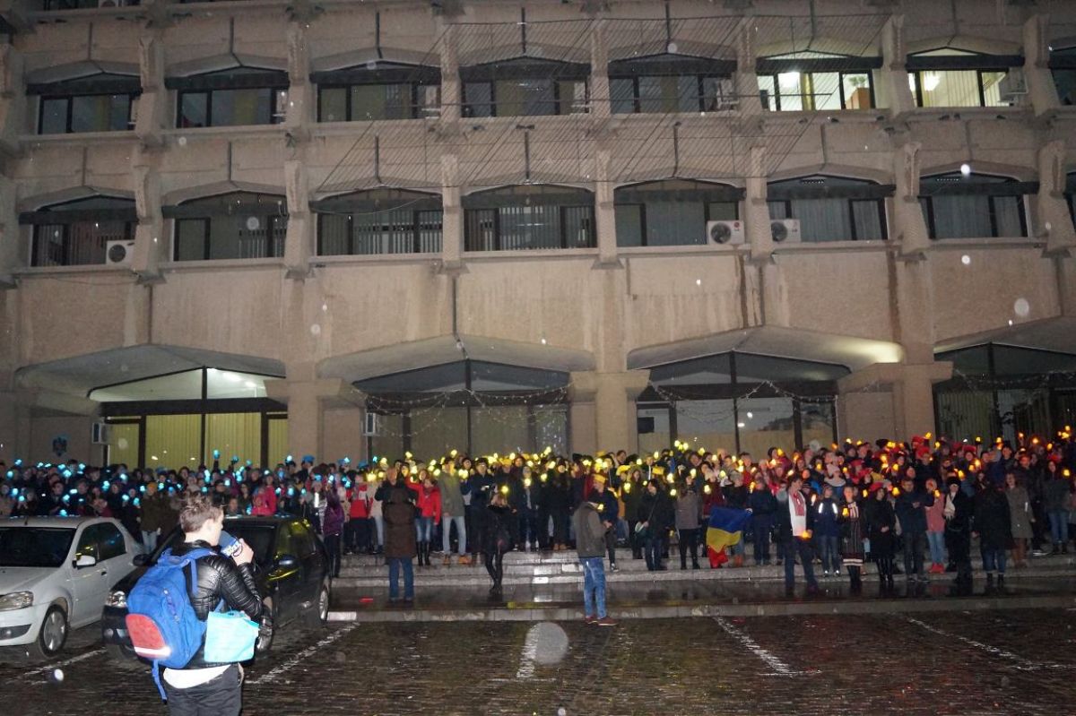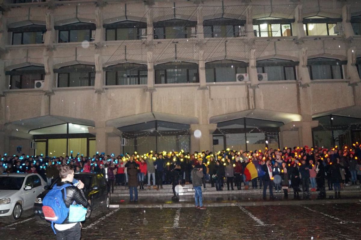 Faţă de ediţiile anterioare, aceasta nu a mai avut însă loc în curtea colegiului, ci în Piaţa Revoluţiei. Aici, luni seară elevii au venit cu luminiţe roşii, galbene şi albastre, reuşind să creeze astfel Tricolorul.