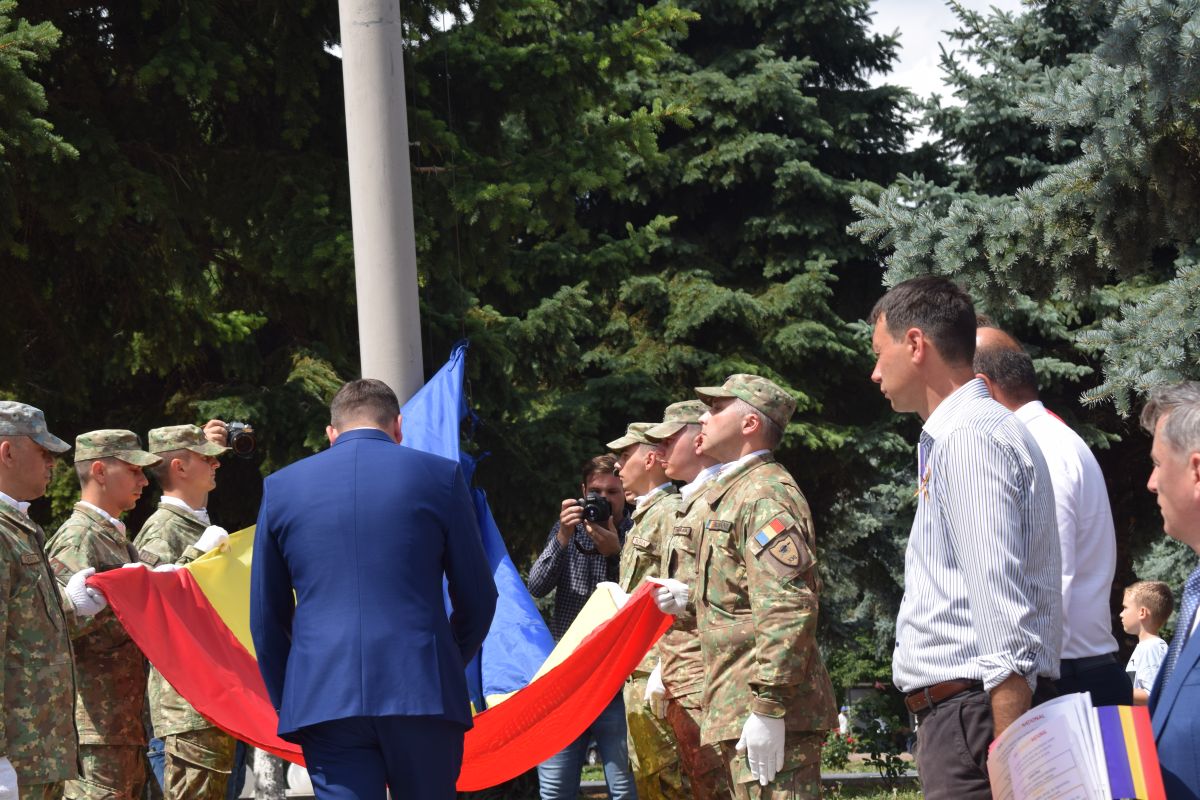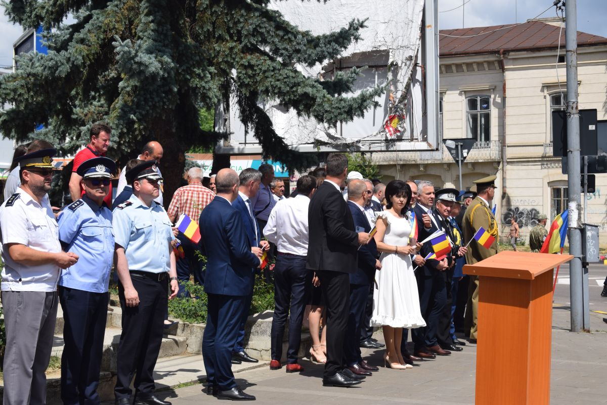 Ca în fiecare an, festivitatea a avut la intersecția străzii Cuza Vodă cu Marchian, zonă denumită drept Piața Tricolorului.