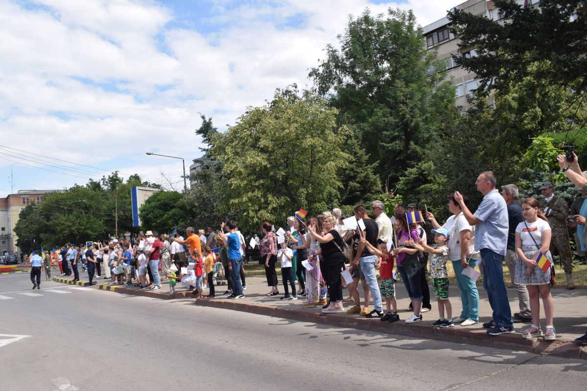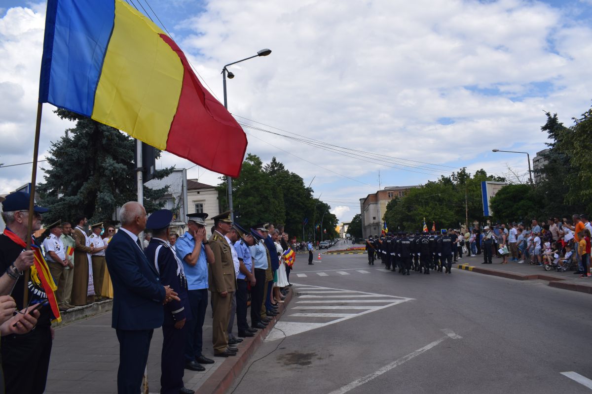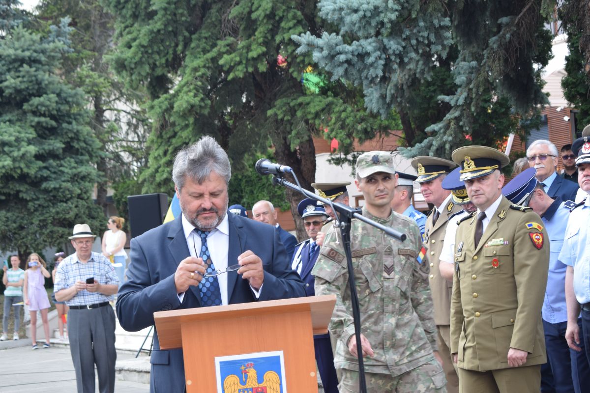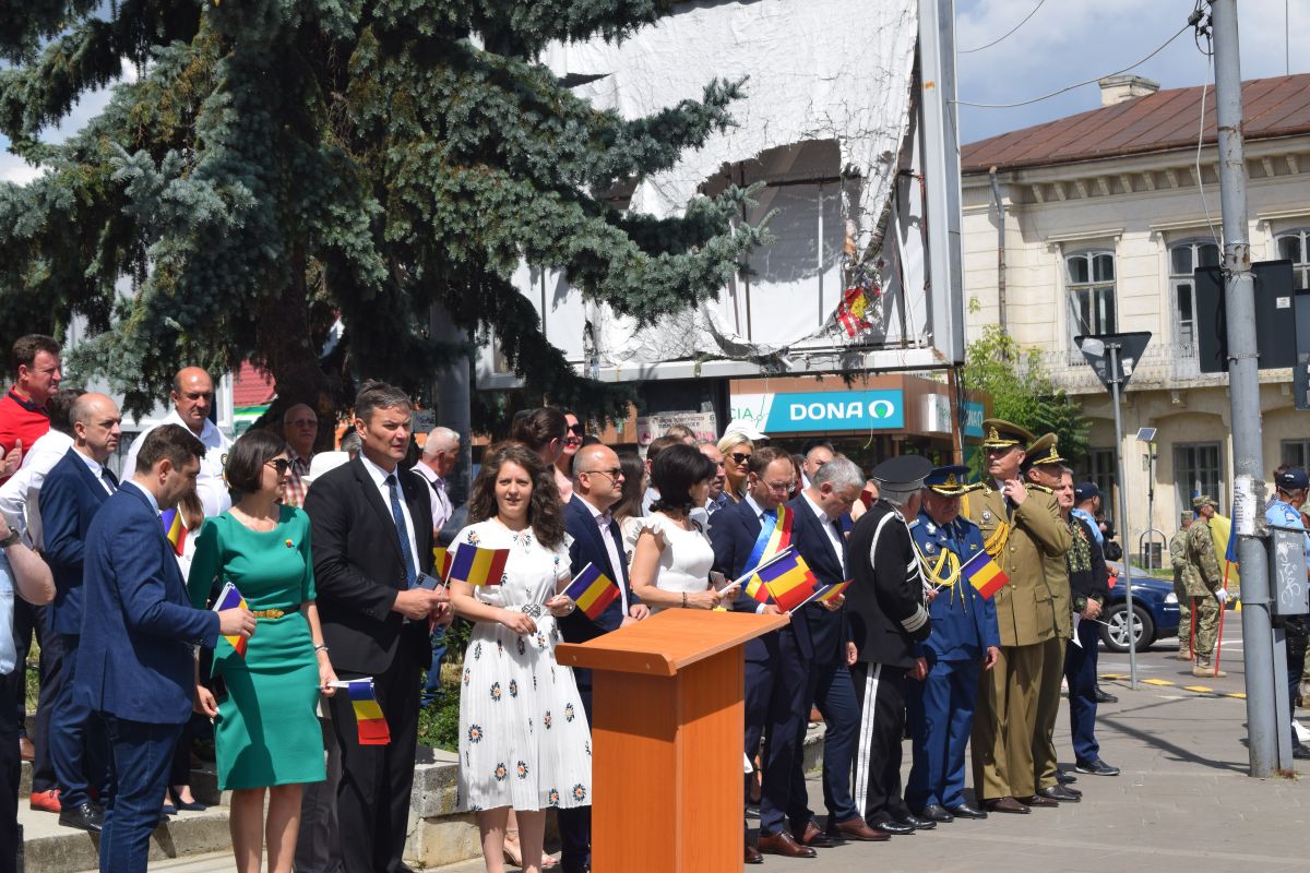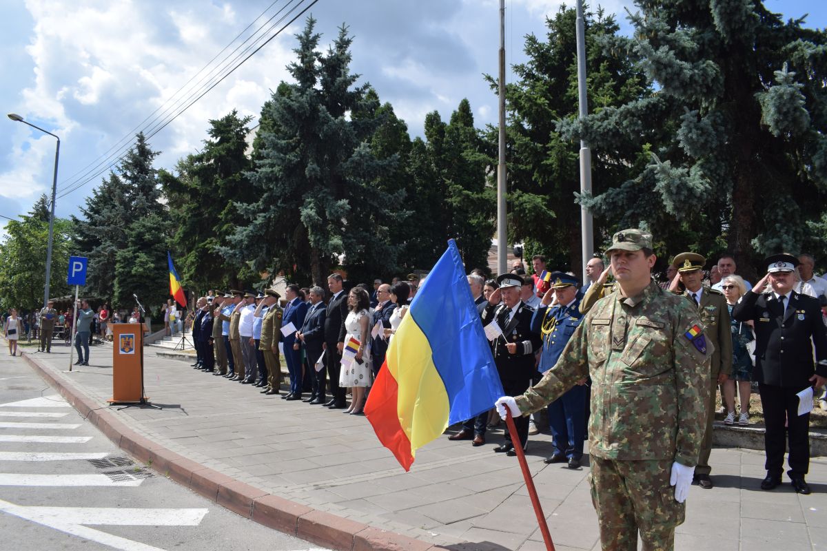 După ce reprezentantul Guvernului în teritoriu, Sorin Cornilă, a dat onor Gărzii Militare, s-a intonat Imnul Național.