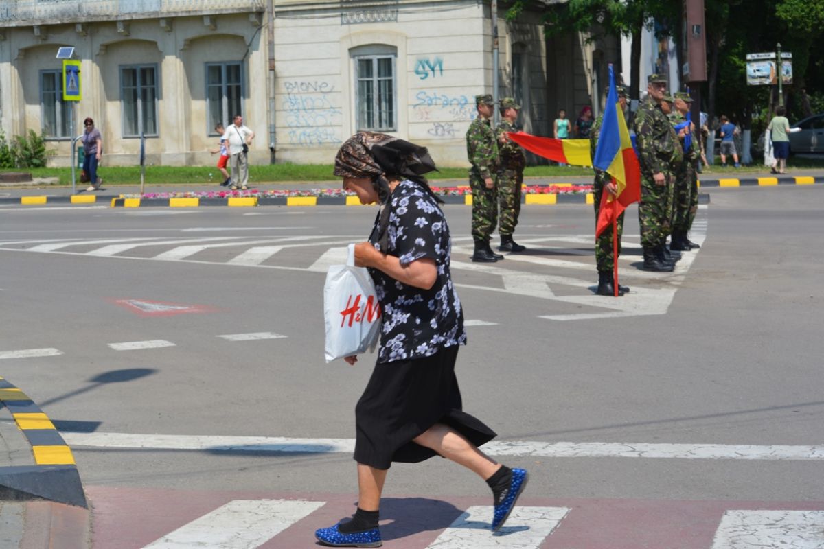 În jur la o sută de oameni s-au strâns luni la amiază la intersecţia străzii Cuza Vodă cu Marchian pentru a asista la ceremonia organizată de Prefectură alături de Garnizoana Botoşani.