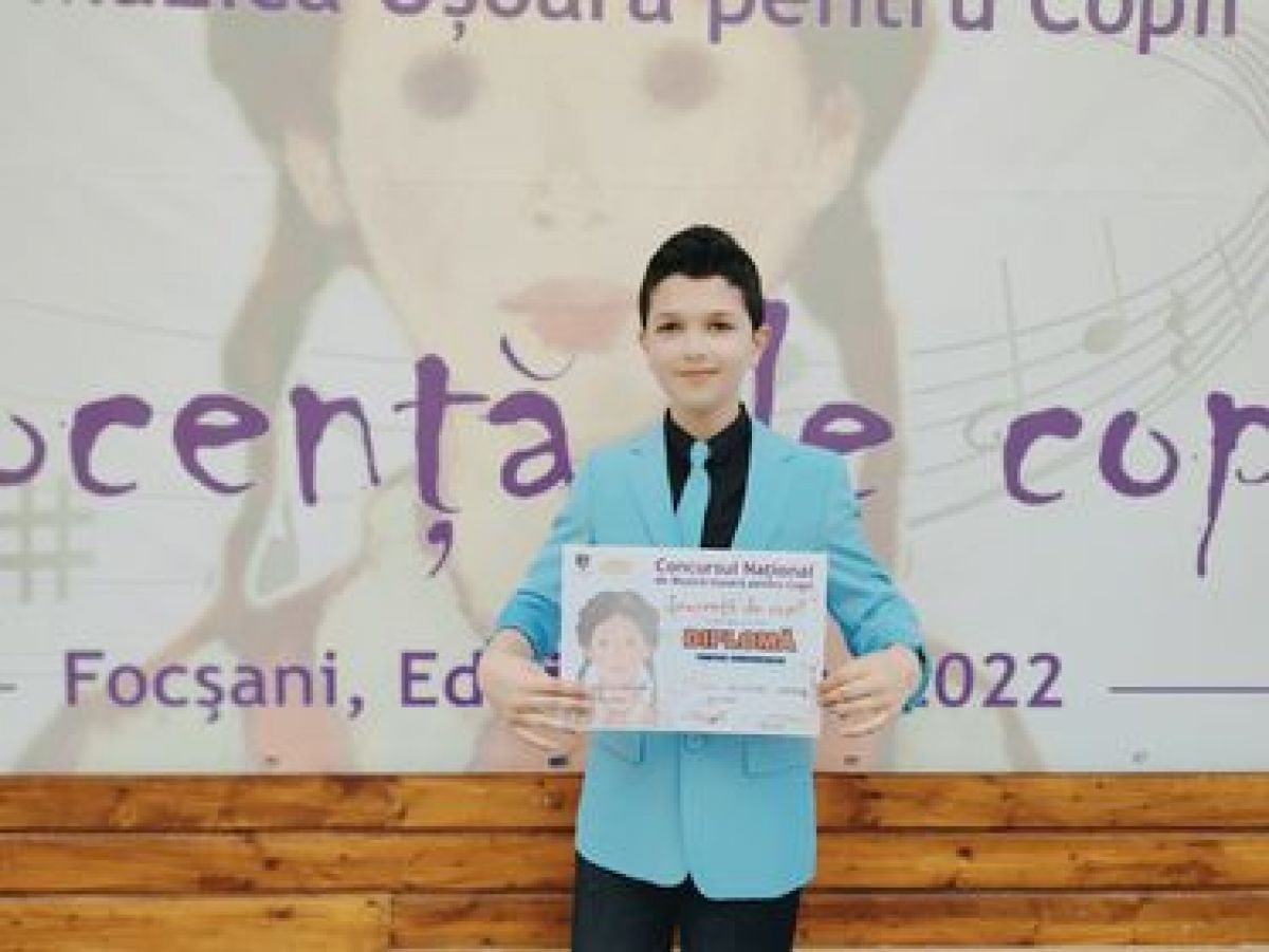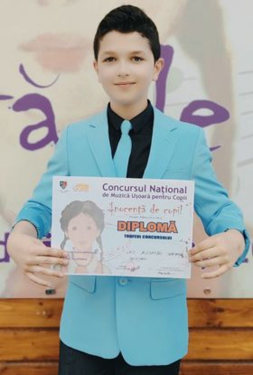 Micul artist a câștigat ieri, 1 iunie, marele Trofeu al Concursului ”Inocență de copil", organizat la Focșani.