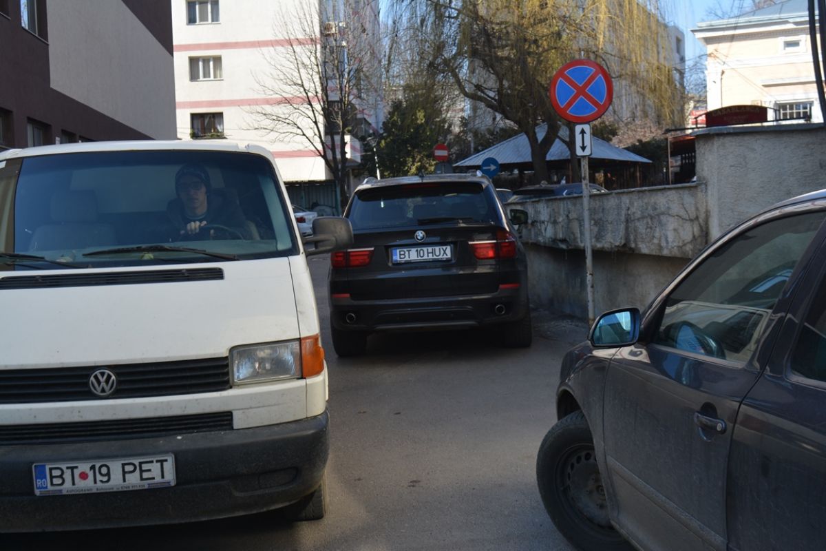 Pe lângă faptul că și-a lăsat BMW-ul chiar sub respectivul indicator, mașina încurca vizibil circulația pe aleea menționată, pe care se mai putea intra sau ieși doar pe o singură bandă, în condițiile în care oricum spațiul de acolo este unul îngust.
