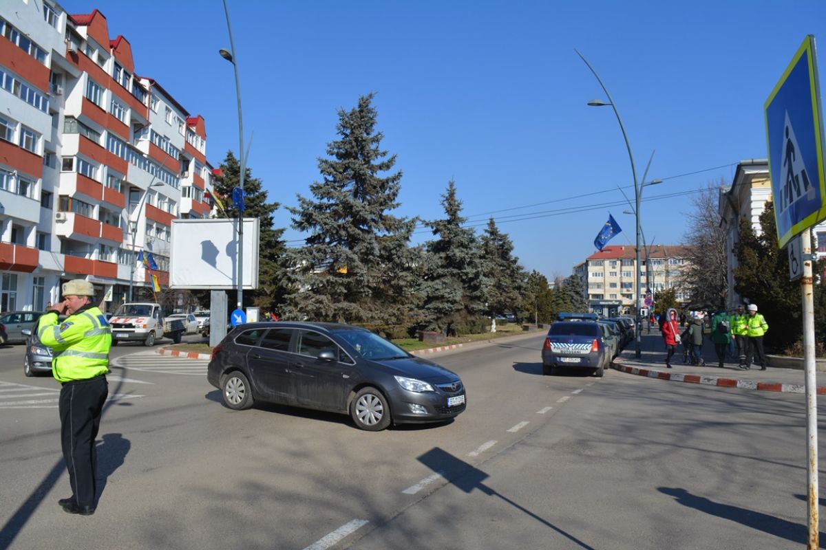 La doar câțiva metri, lângă sediul PSD Botoșani, se aflau mai multe echipaje de la Serviciul Rutier, Poliția Locală și Jandarmerie, însă grija acestora era să se ocupe de marșul liberalilor pentru Autostrada Unirii.