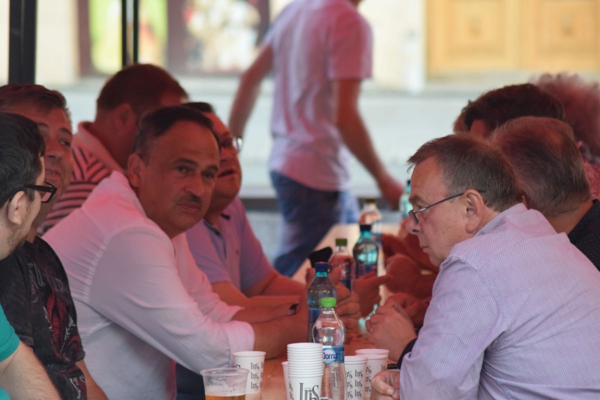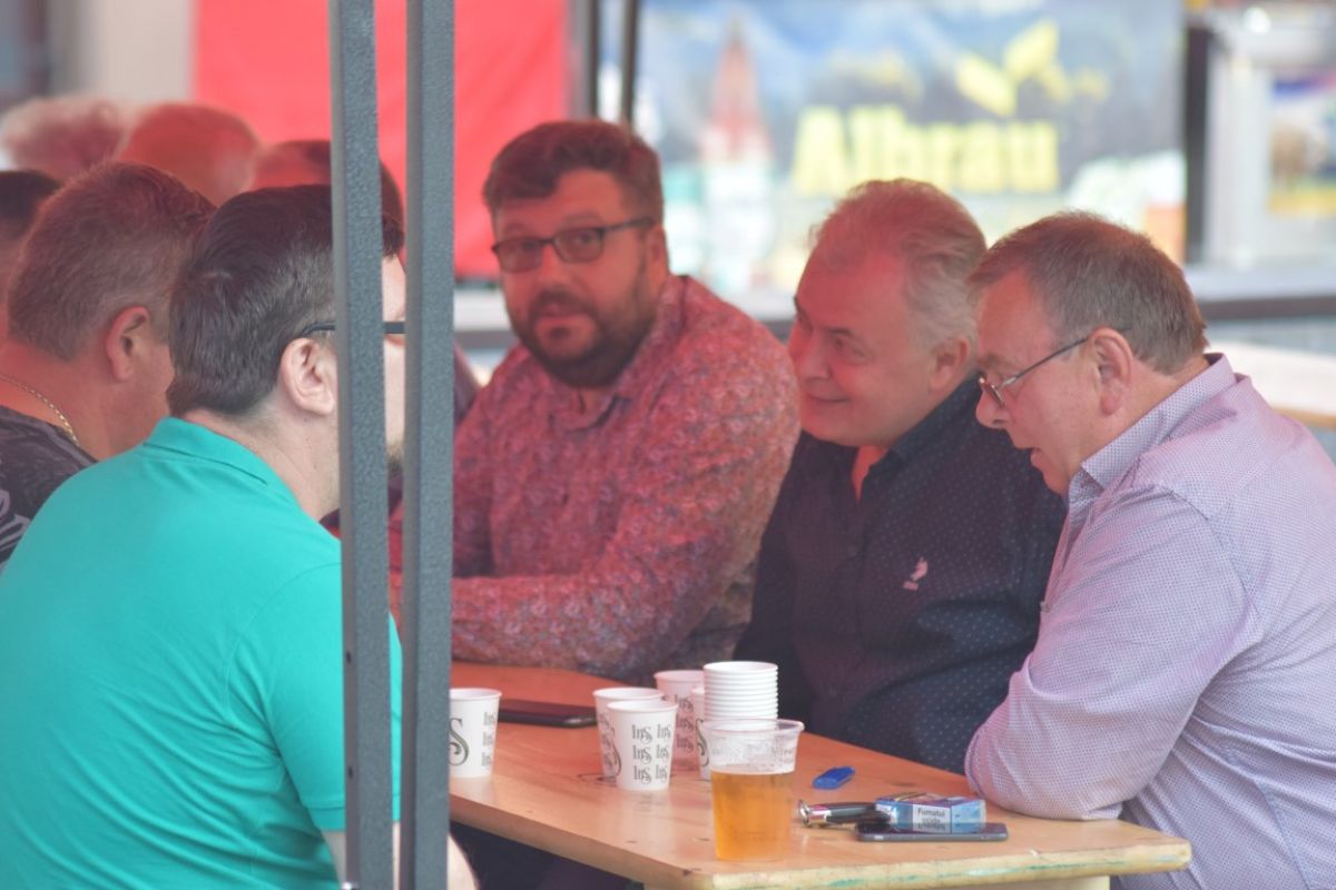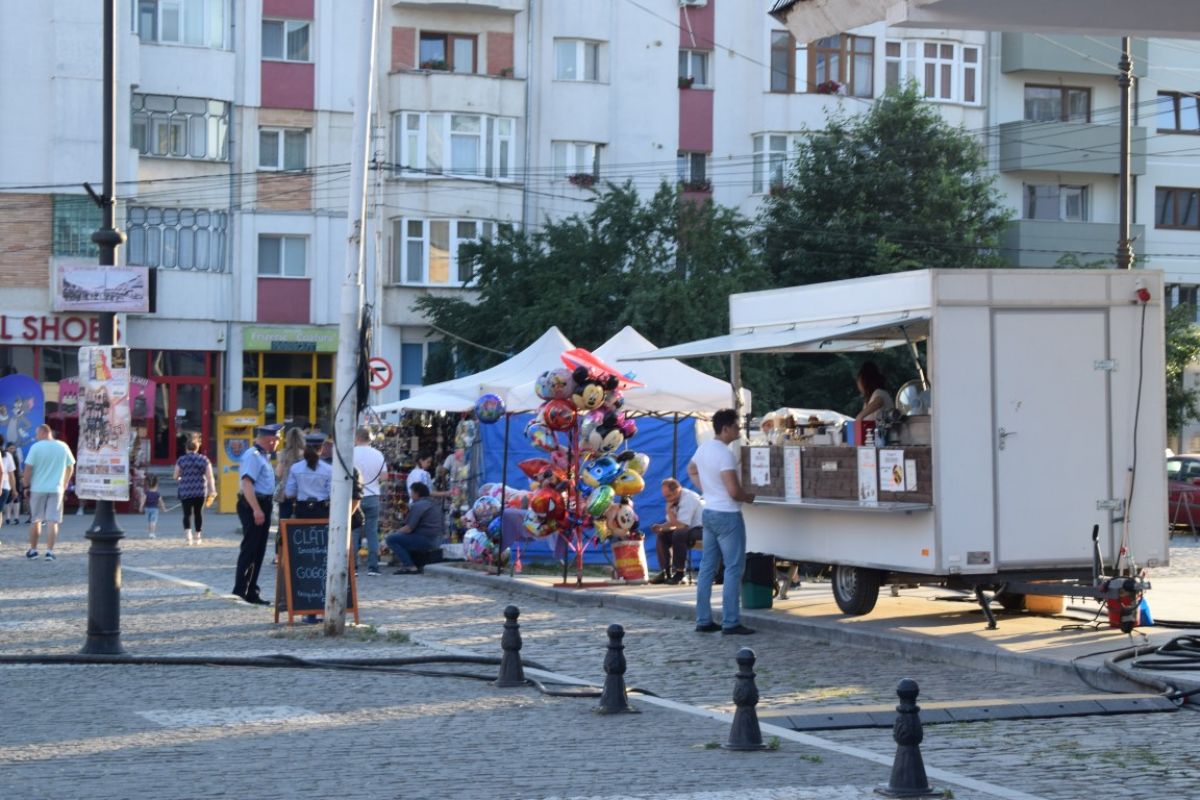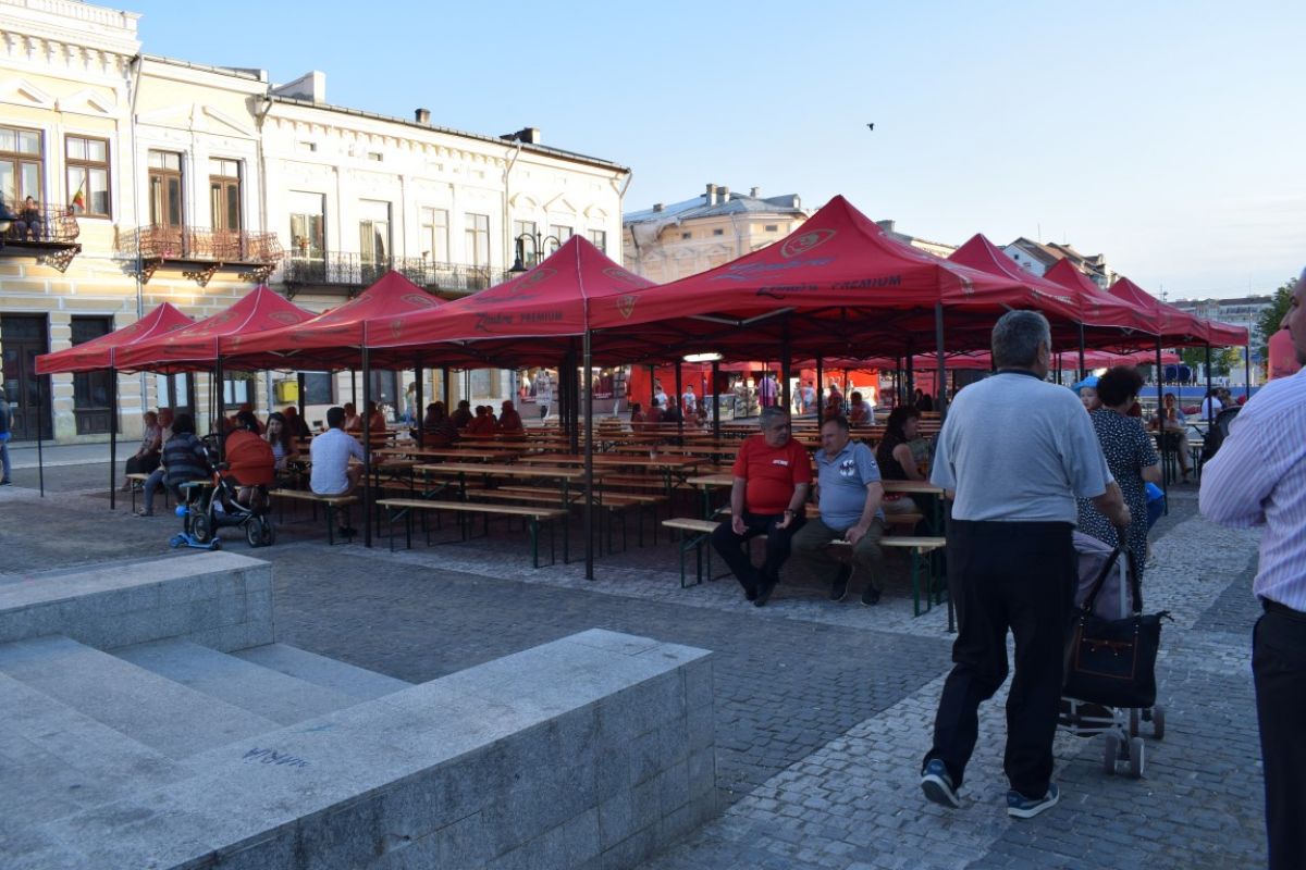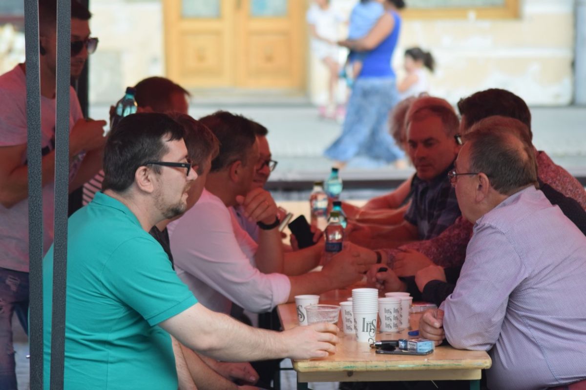 În zonă a ajuns și primarul Cătălin Flutur alături de mai mulți liberali. S-au așezat la o terasă, ceva mai departe de scenă.
