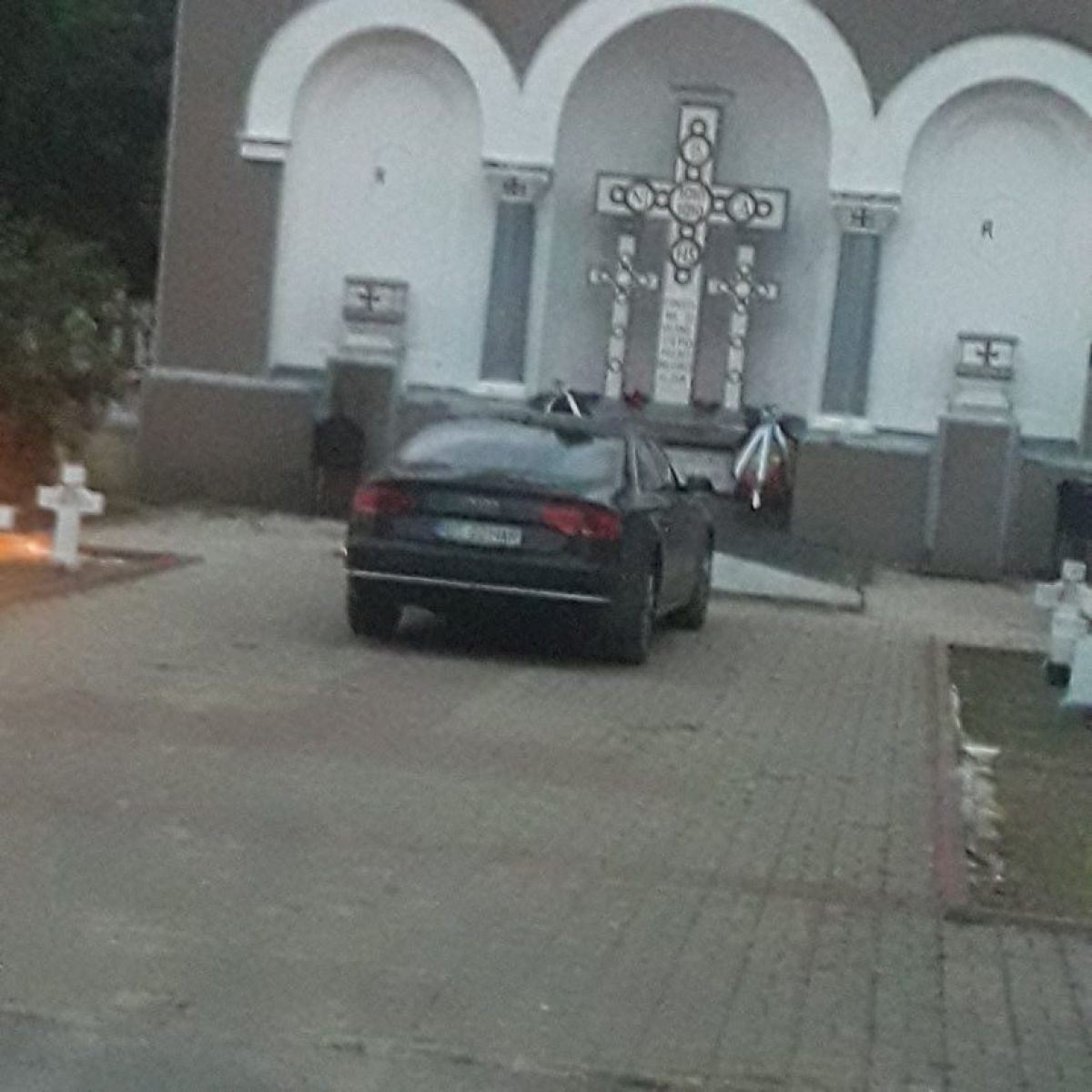 Automobilul Audi a pătruns cu farurile aprinse până în apropierea crucii monument din mijlocul Cimitirului Eroilor.