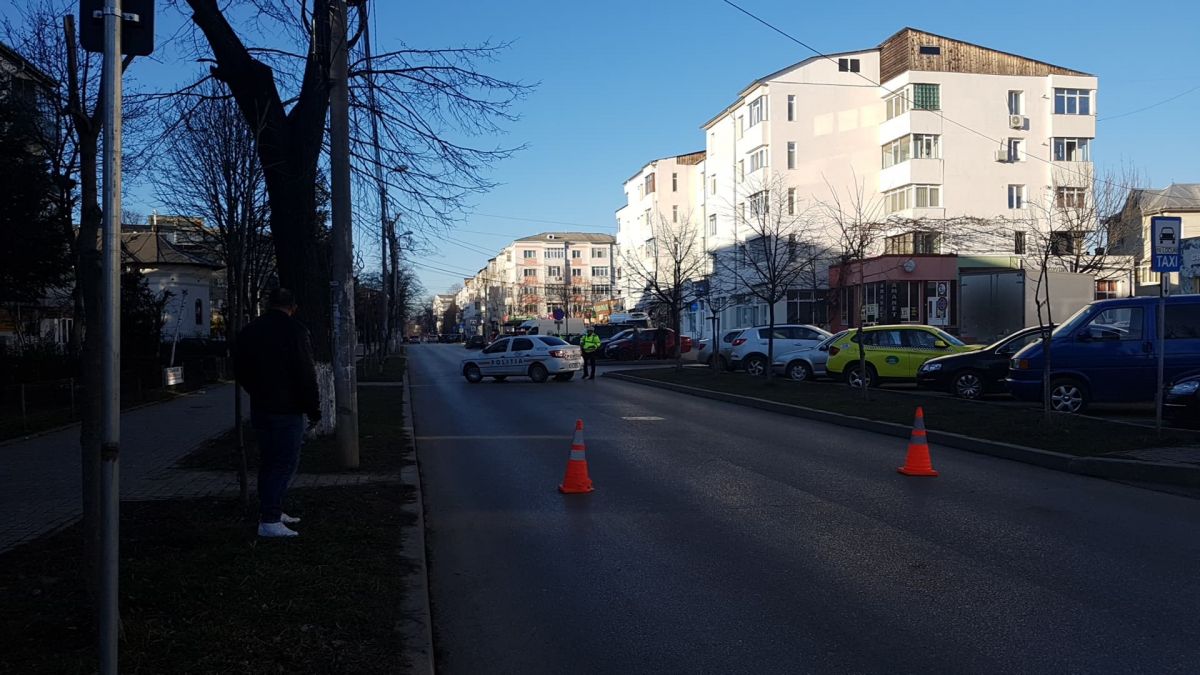 Un accident rutier mai atipic a avut loc în urmă cu puține minute pe strada Bucovina din municipiul reședință de județ.