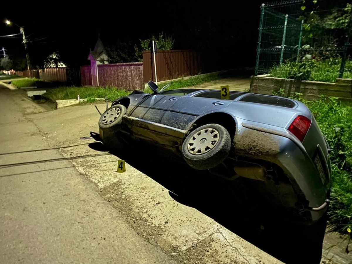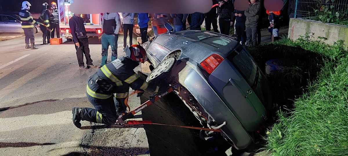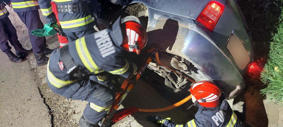 La sosirea echipajelor de intervenție la locul evenimentului, a fost găsit un autoturism care a lovit un cap de pod, iar mai apoi s-a răsturnat pe o parte în șanț.