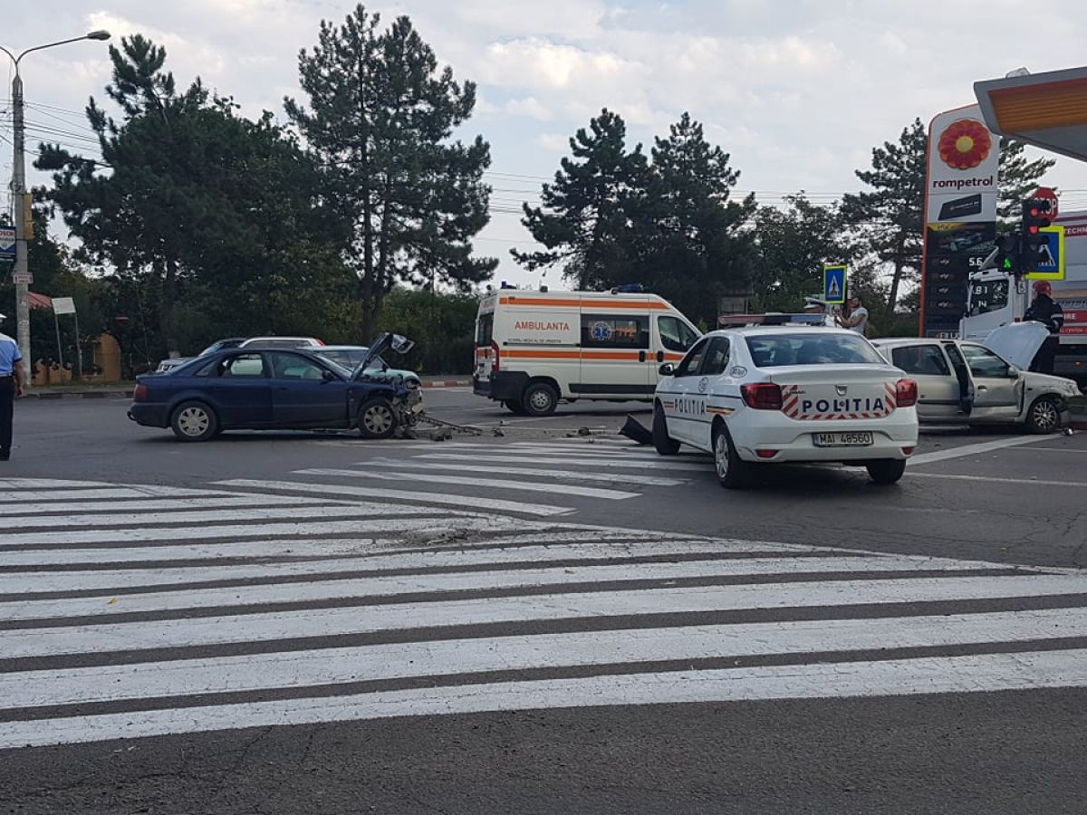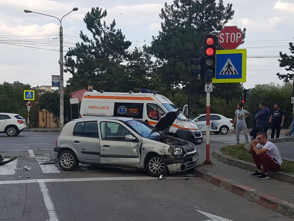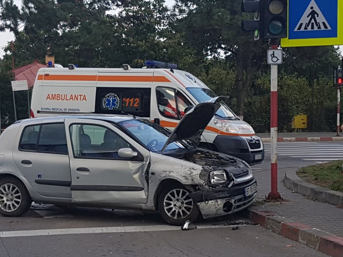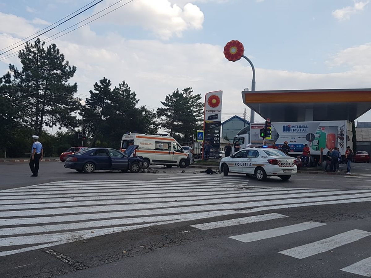 Accident rutier petrecut în urmă cu puține momente la intersecție străzilor Calea Națională cu Petru Rares, lângă stația Rompetrol.