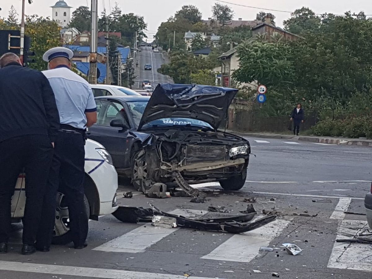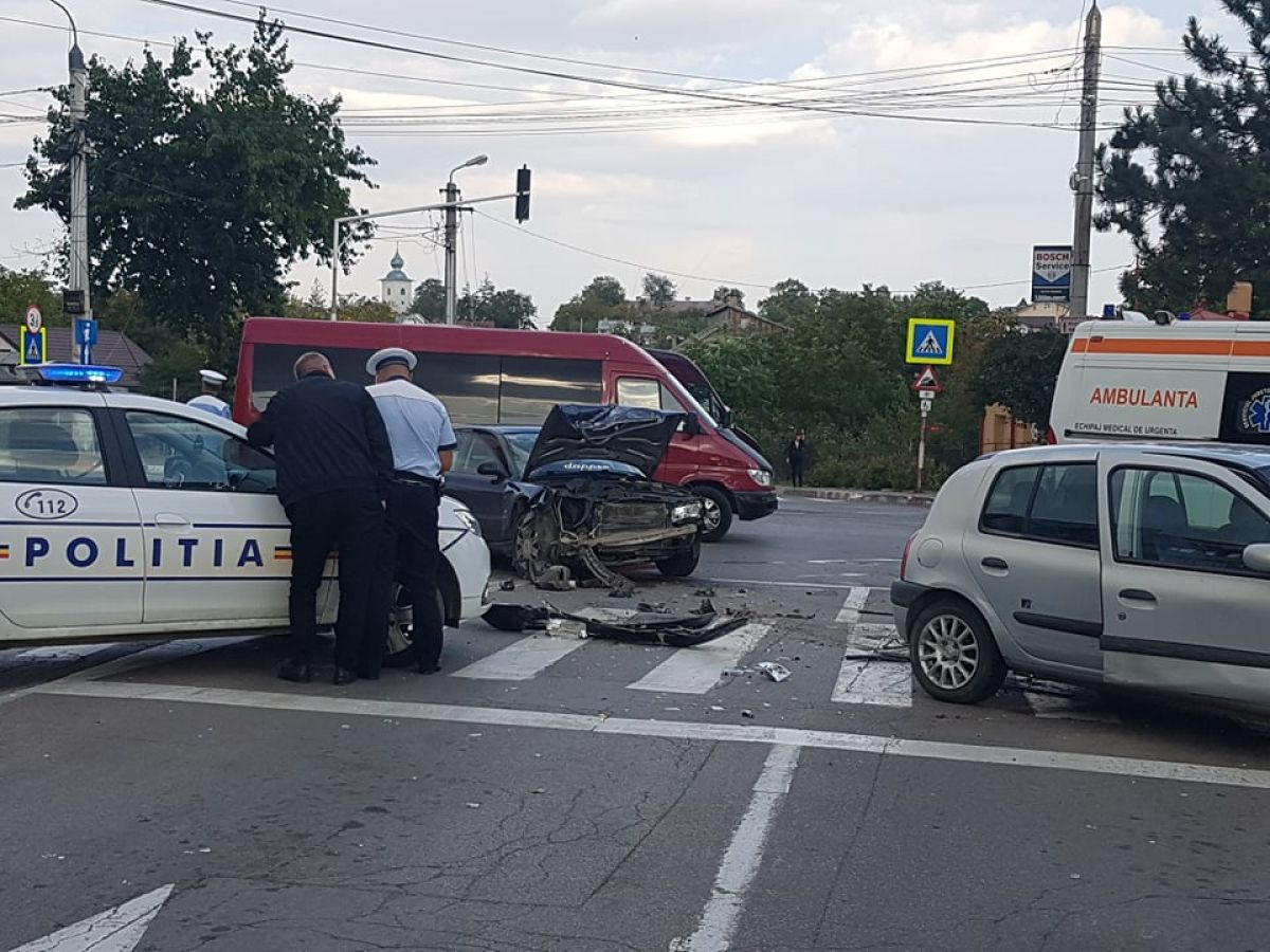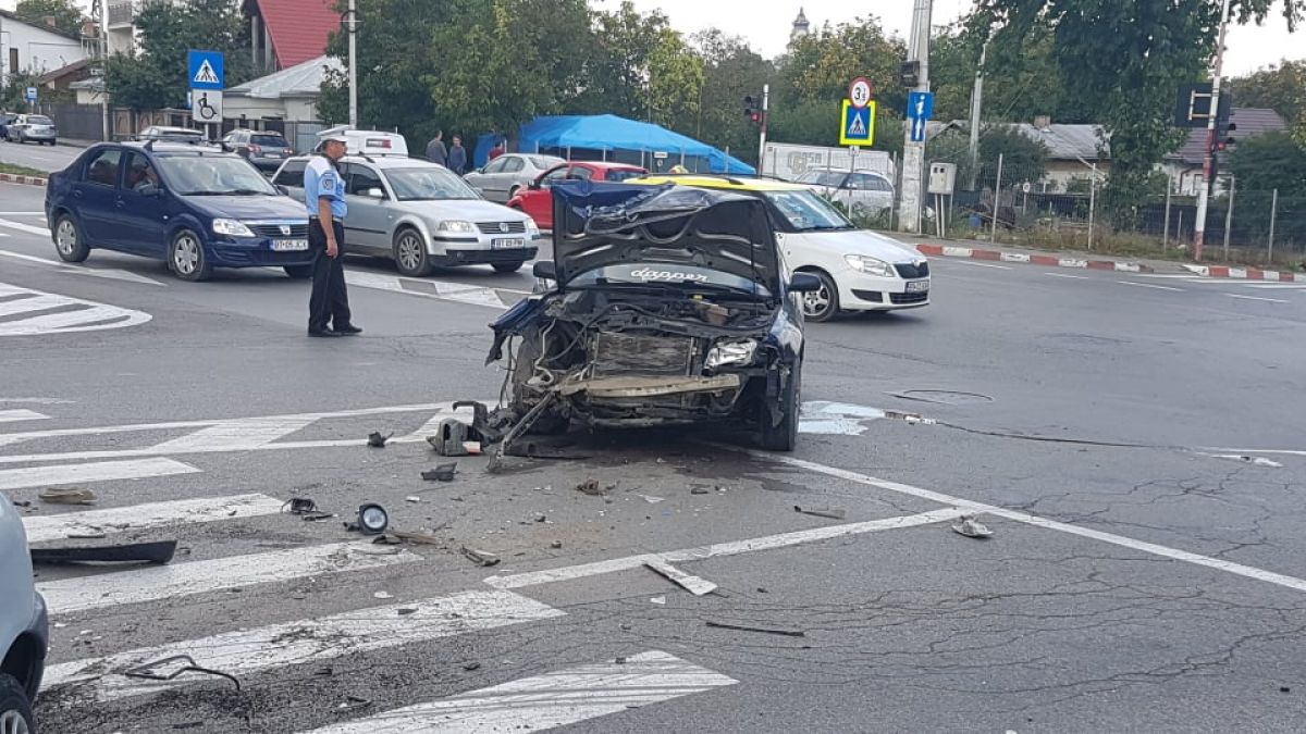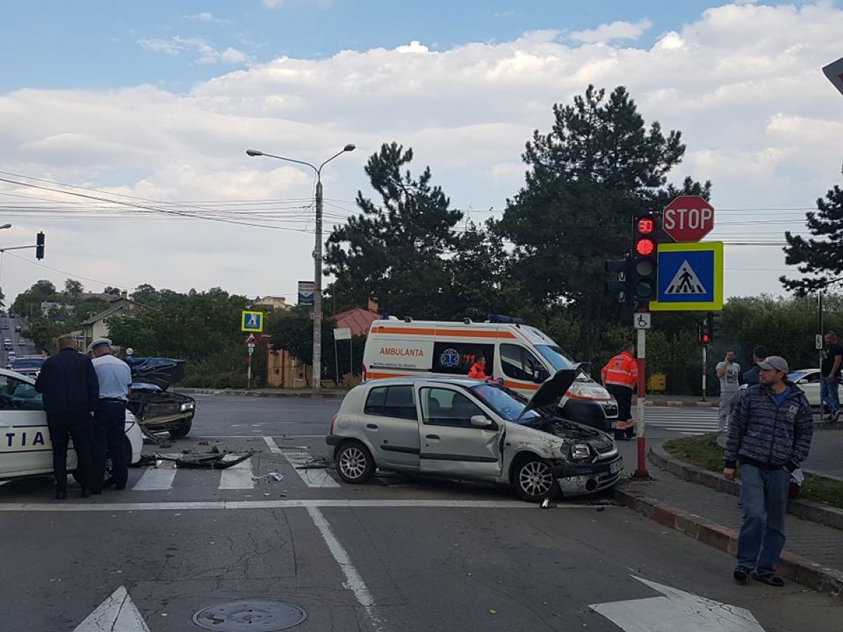 Accident rutier petrecut în urmă cu puține momente la intersecție străzilor Calea Națională cu Petru Rares, lângă stația Rompetrol.