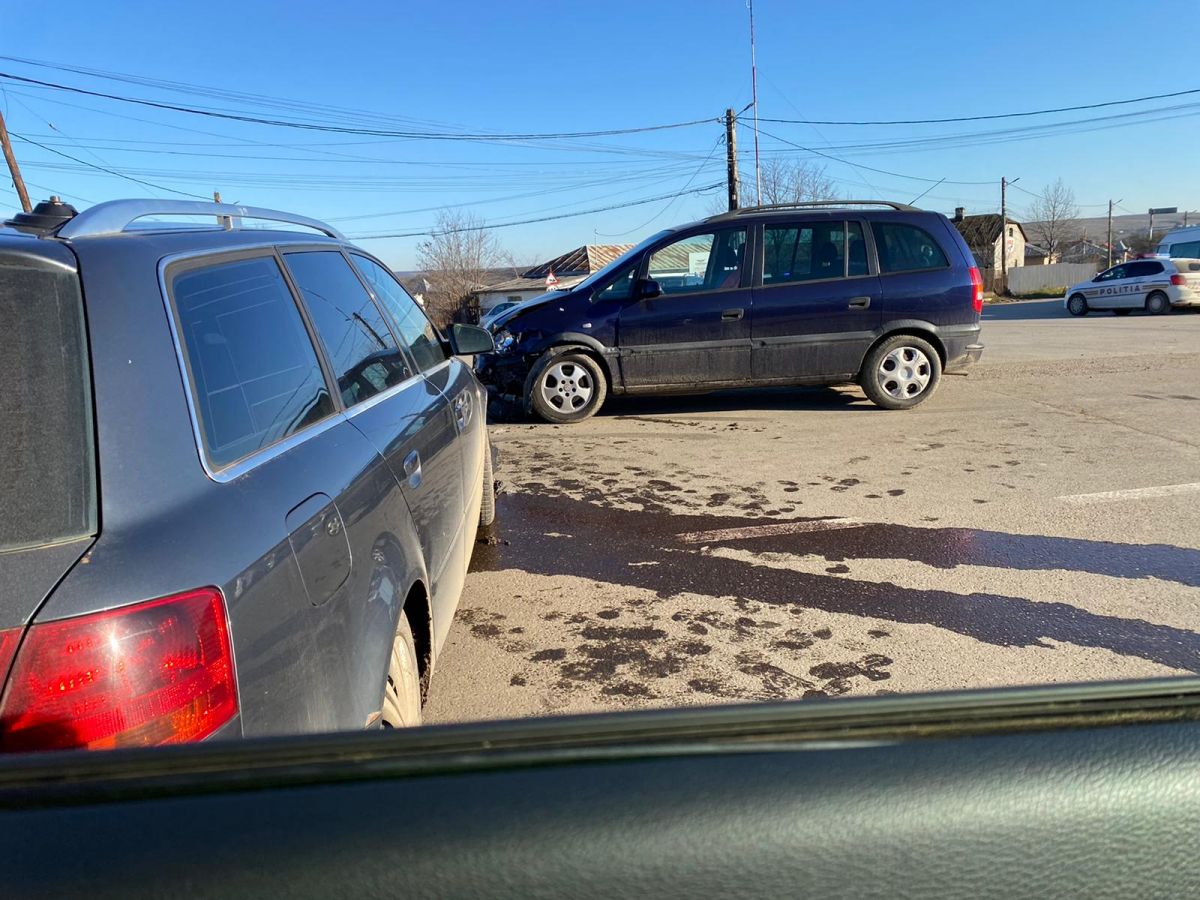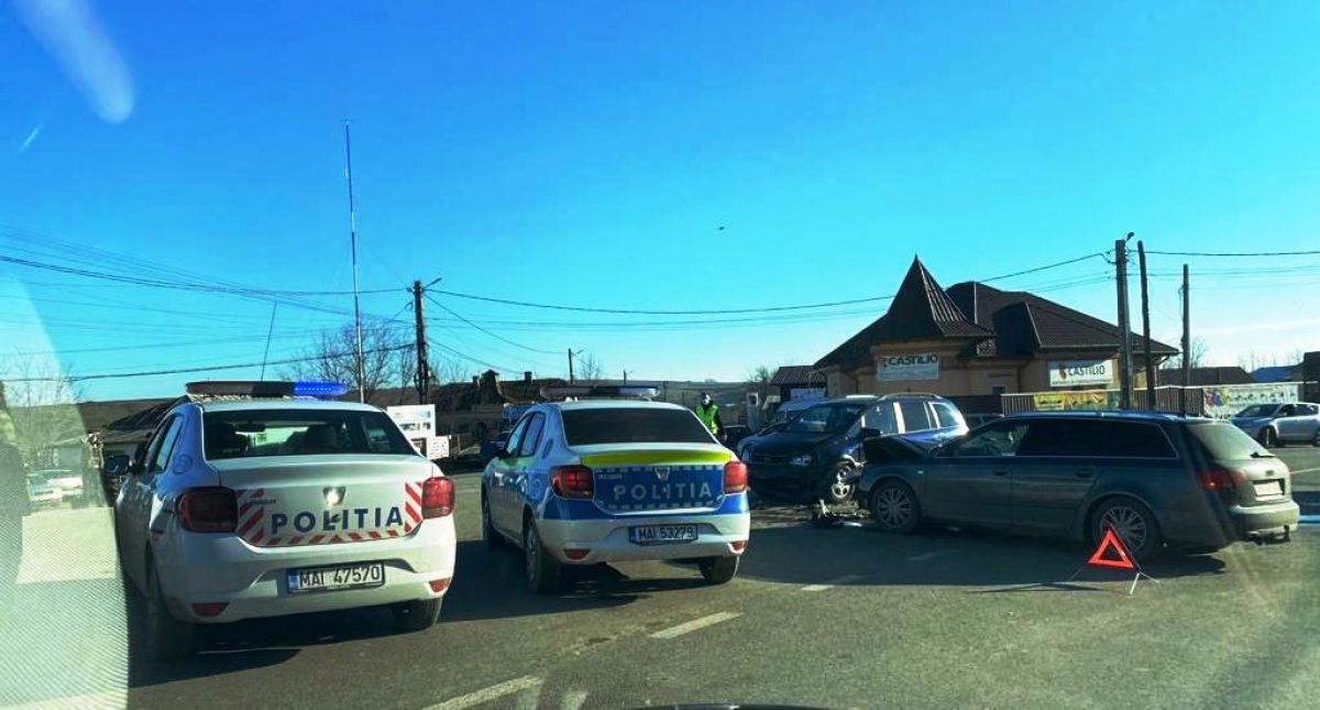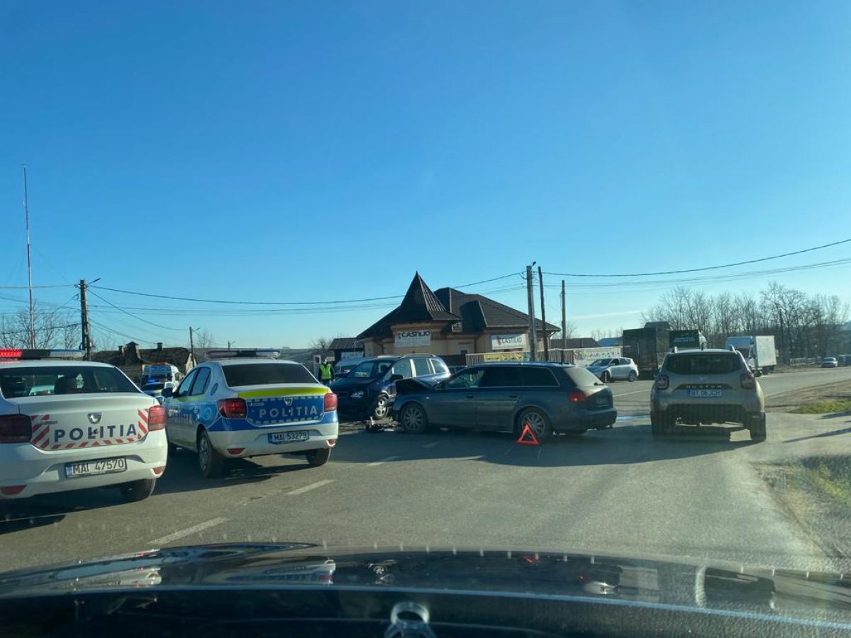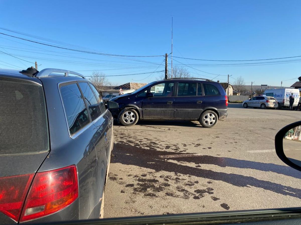 Ambele mașini au fost avariate La fața locului sunt trei echipaje de Poliție, circulația în zonă fiind dirijată.