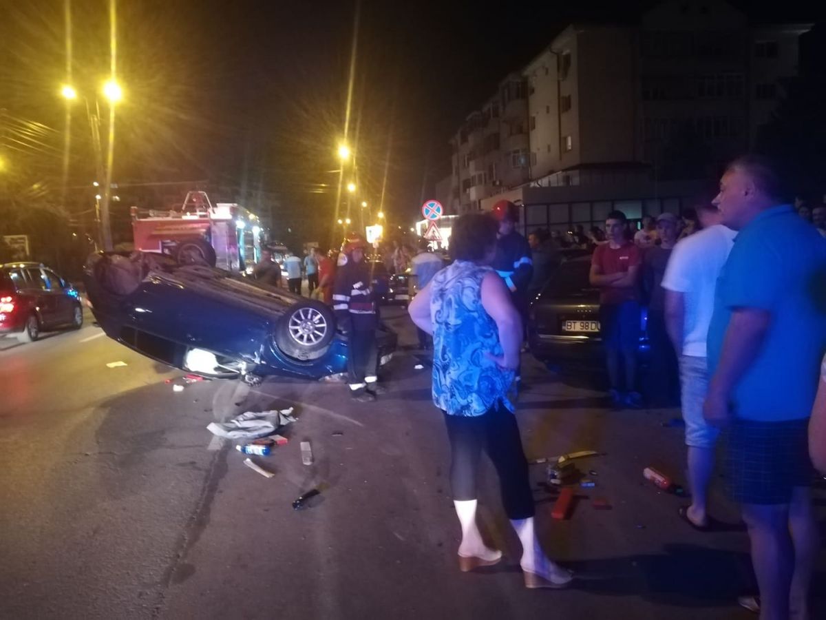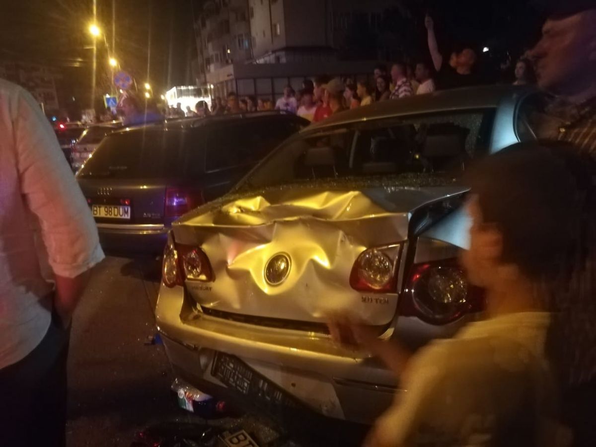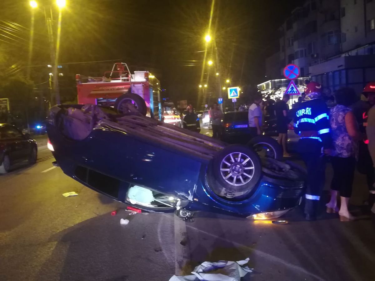 Un tânăr care circula dinspre Uvertura Mall către Direcția Muncii a pierdut controlul asupra volanului a lovit o bordură după care s-a răsturnat de mai multe ori pe carosabil. În urma impactului un autoturism marca VW care era parcat a fost distrus în partea din spate.