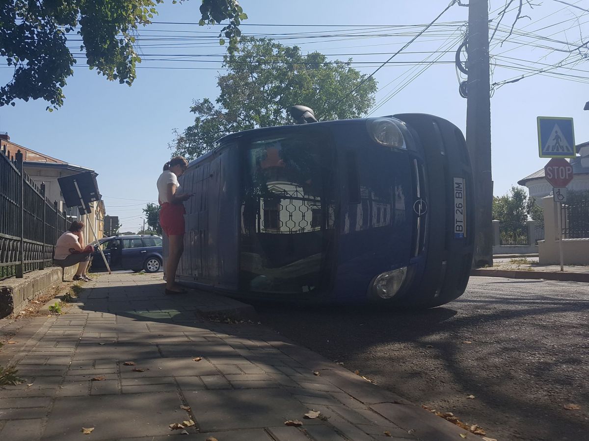 Accident rutier spectaculos petrecut în urmă cu puține momente, în zona centrului istoric al municipiului Botoșani.