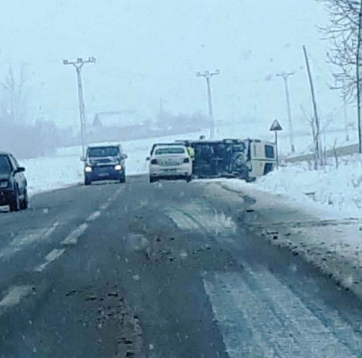 O autoutilitară s-a răsturnat pe carosabil pe drumul care face legătura între Botoșani și Tudora.