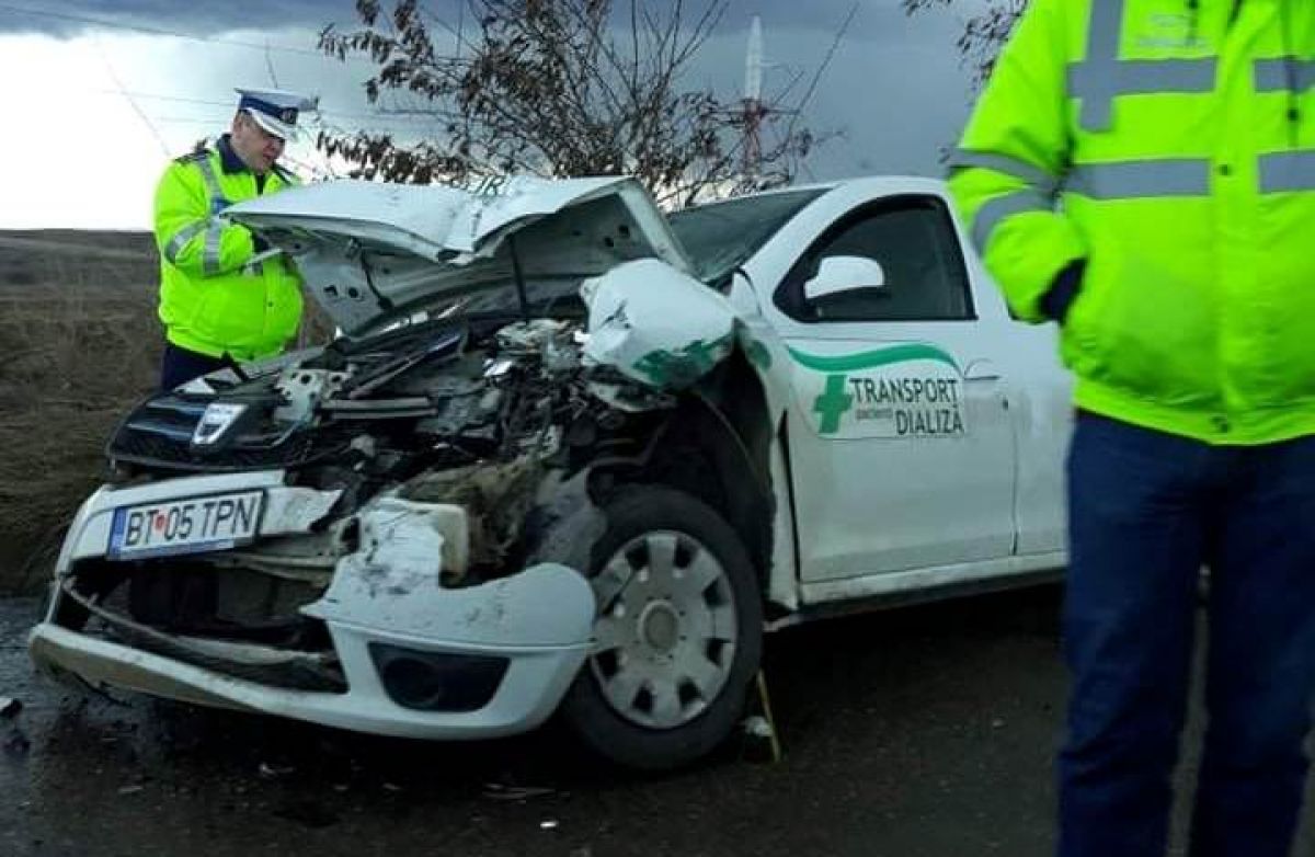 Un Logan utilizat pentru transportul persoanelor care necesită dializă s-a lovit sâmbătă la amiază într-un microbuz.