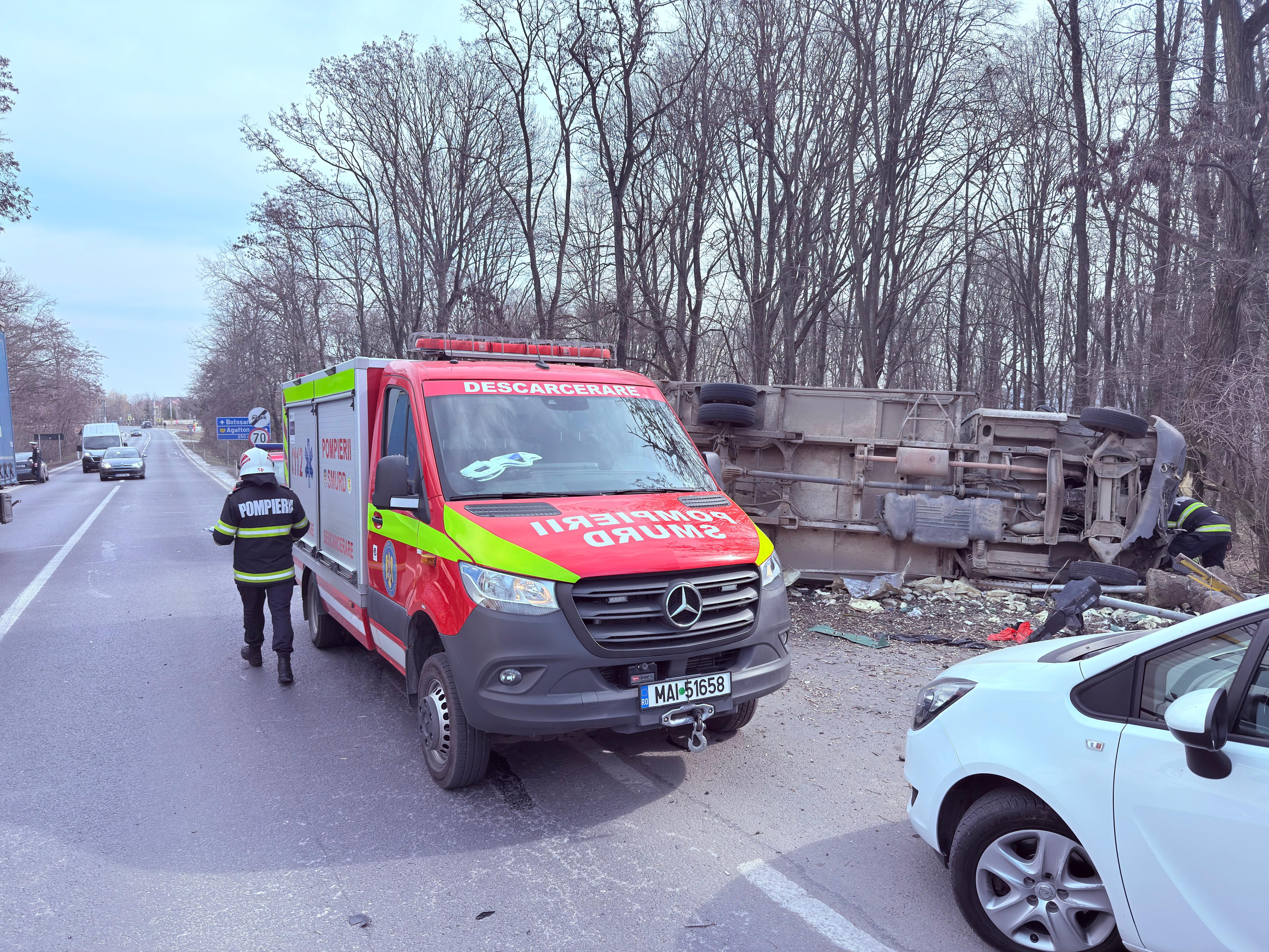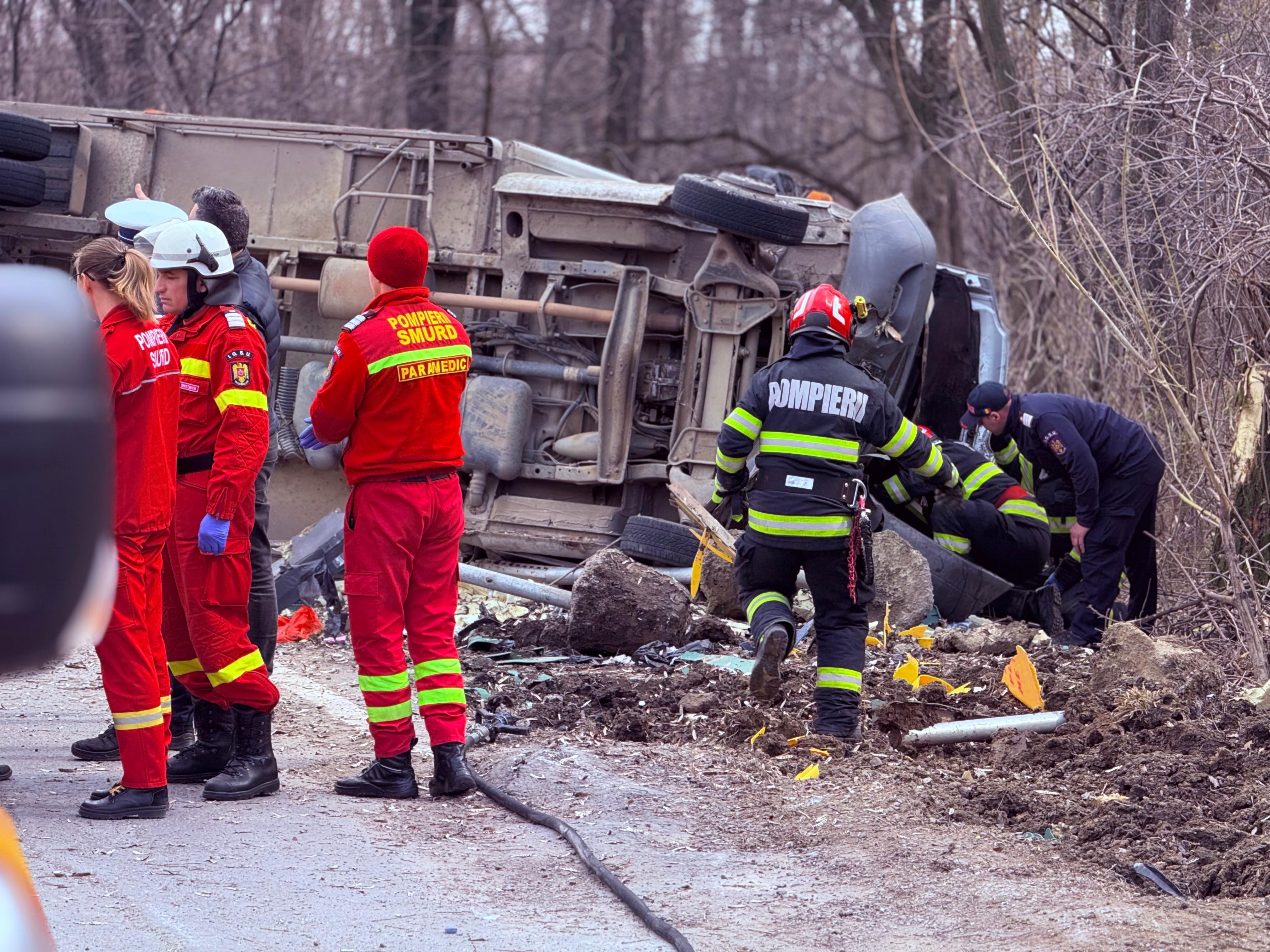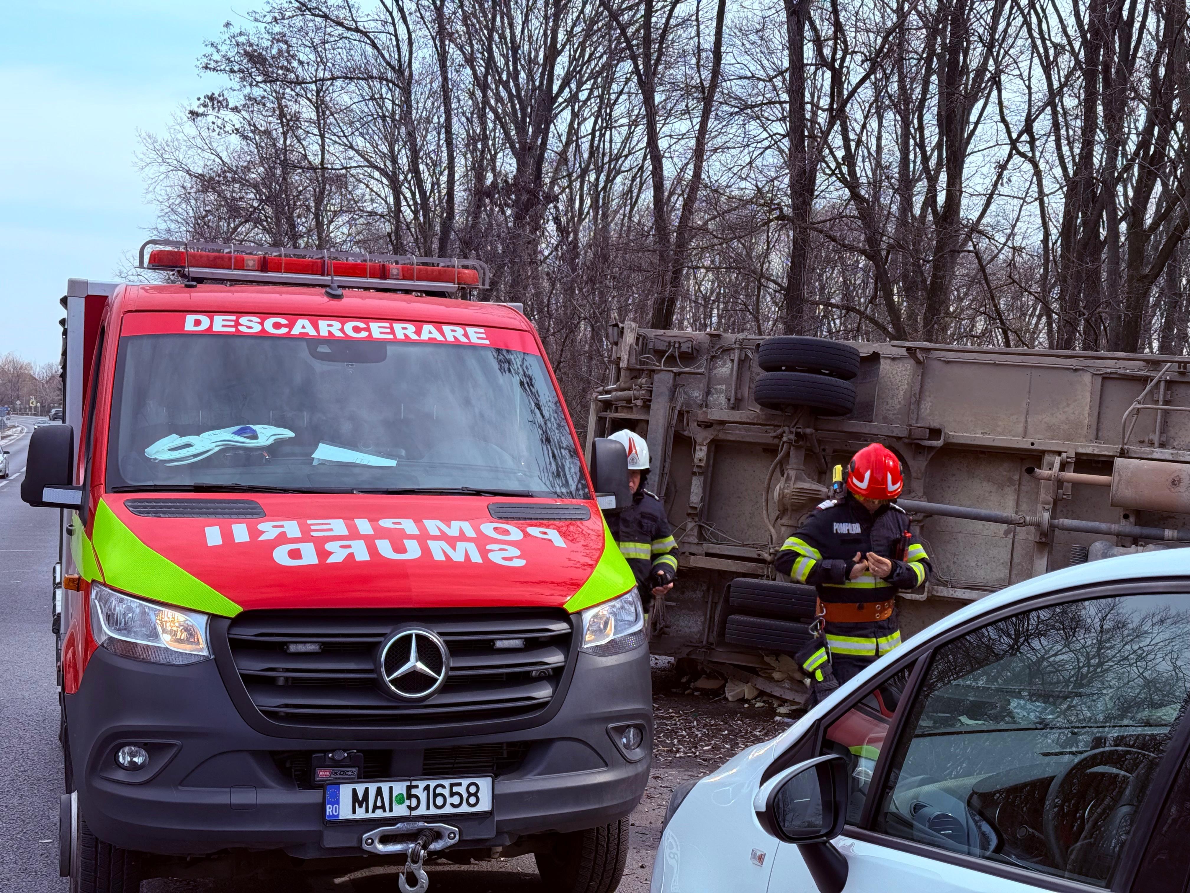 ULTIMĂ ORĂ: Două mașini și un camion s-au izbit la Baisa, un șofer dus urgent la spital