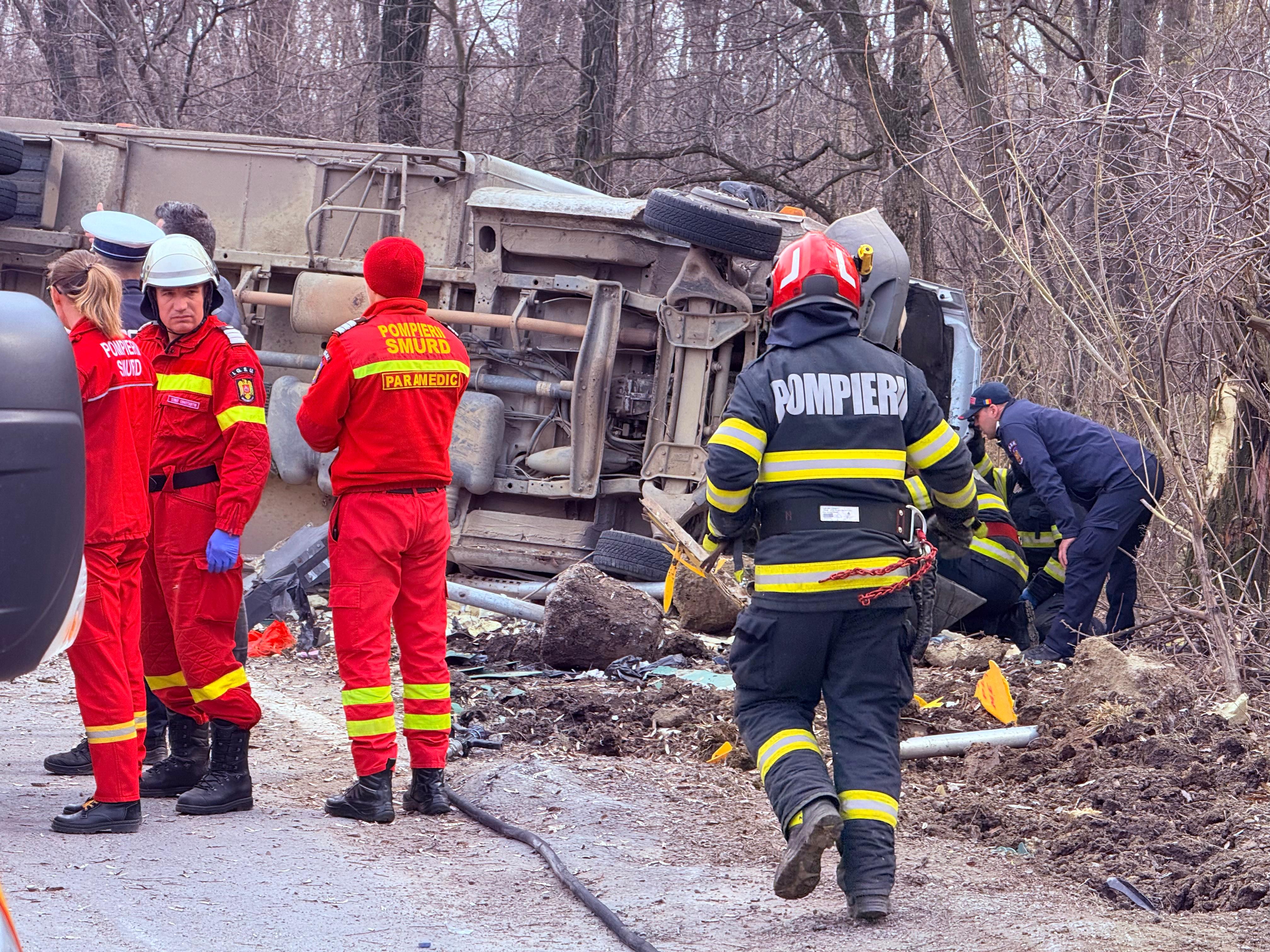 Pompierii au asigurat măsurile de prevenire a incendiilor, fiind deconectate bornele bateriilor.