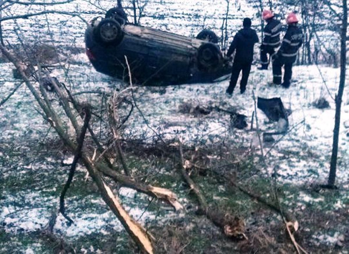 Pe drumul de la Ipoteşti, probabil din cauza carosabilului acoperit cu polei, un şofer a pierdut controlul asupra automobilului.