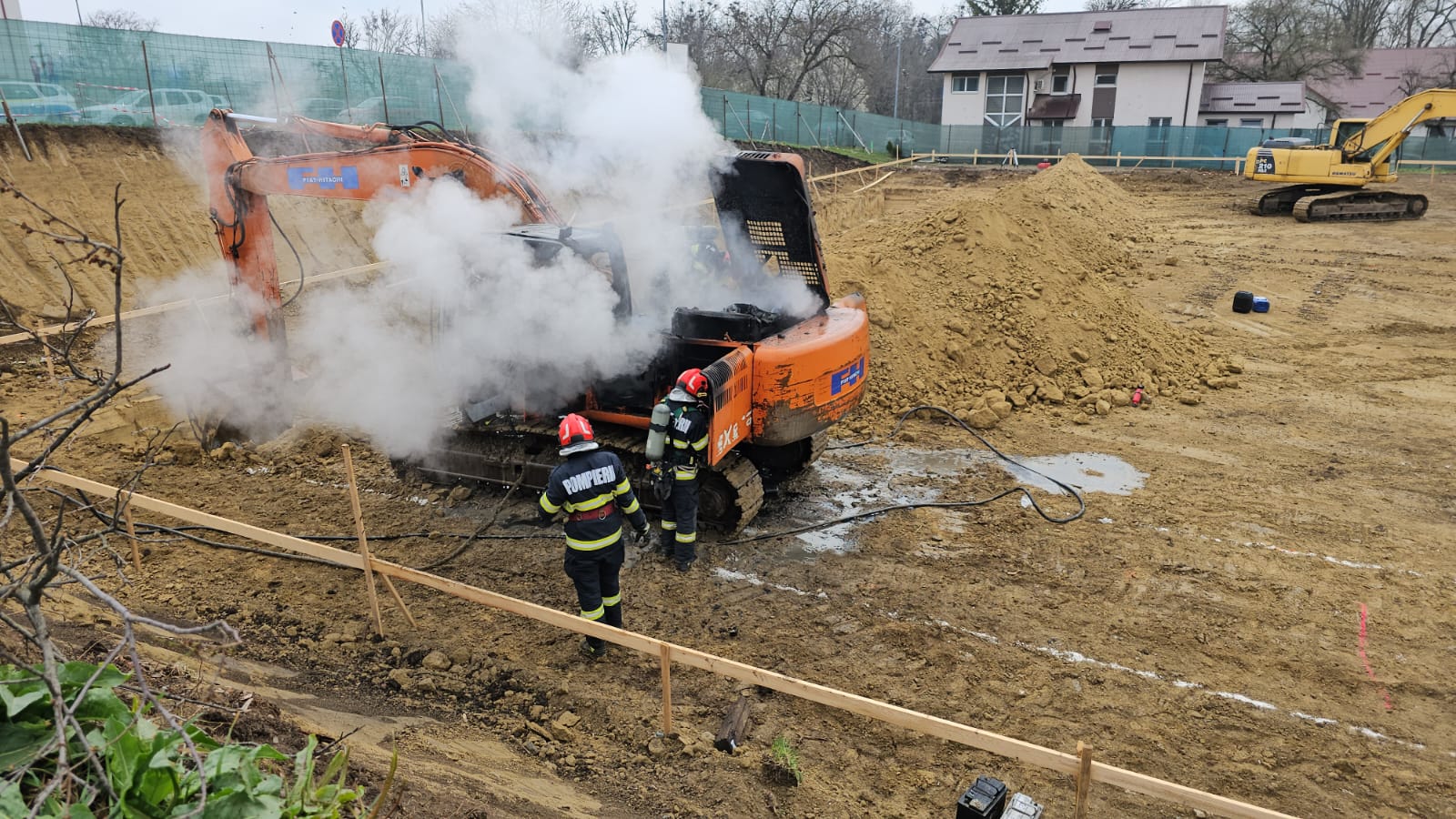 Până la sosirea forțelor de intervenție, conducătorul utilajului a folosit patru stingătoare, dar nu a reușit să stingă flăcările.