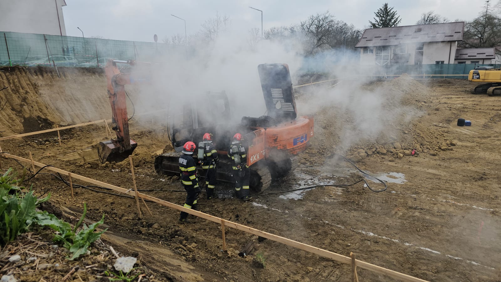Un utilaj a luat foc în timp ce executa lucrări de excavare pe strada 1 Decembrie din municipiul Dorohoi.