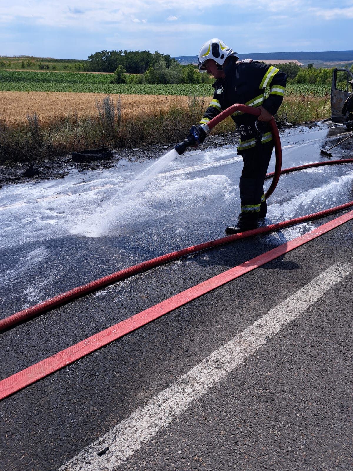 Un microbuz a luat foc, astăzi, în timp ce se deplasa pe DN 29 D, la ieșirea din localitatea Trușești spre Ștefănești. Conducătorul auto a simțit miros de fum, a oprit autovehiculul și a ieșit din interior, împreună cu toți cei opt pasageri.