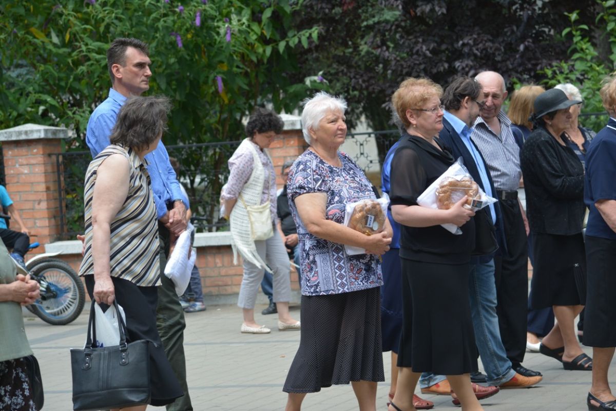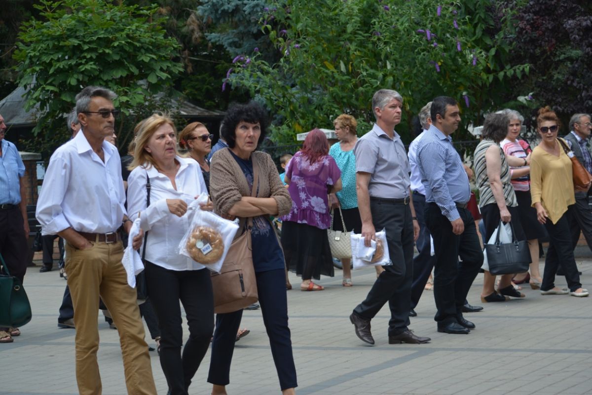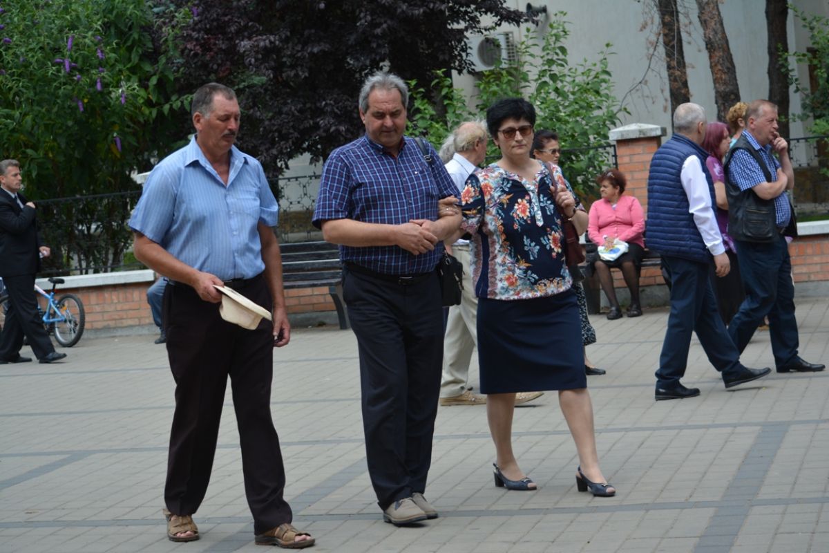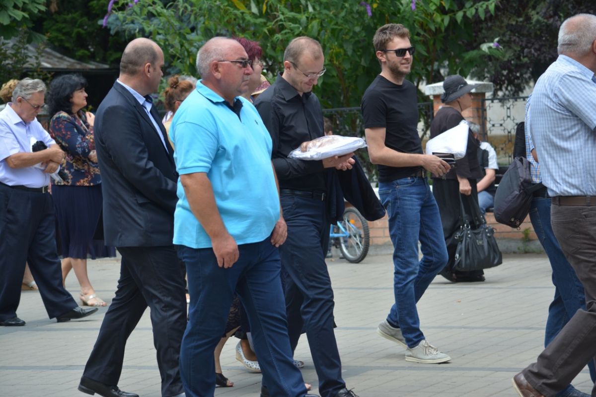 Doi preoți deschideau cortegiul funerar format din câteva sute de oameni și care cuprindea inclusiv câteva microbuze menite să transporte oamenii la cimitir.
