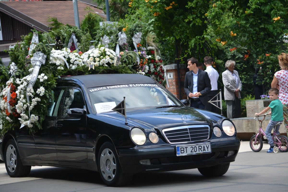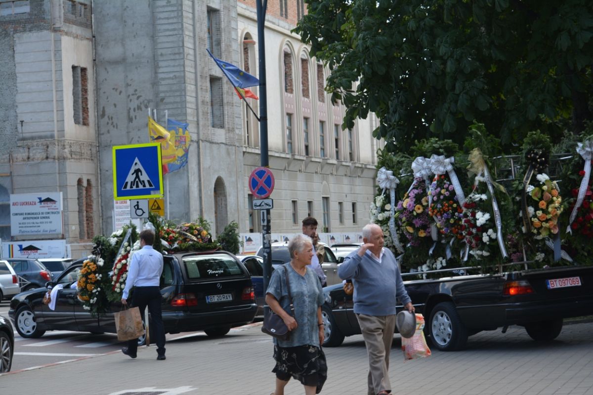 Două mașini mortuare pline de coroane au precedat-o pe cea în care se afla sicriul și care era flancată de patru tineri îmbrăcați impecabil, din costumația cărora nu lipseau mănușile albe.