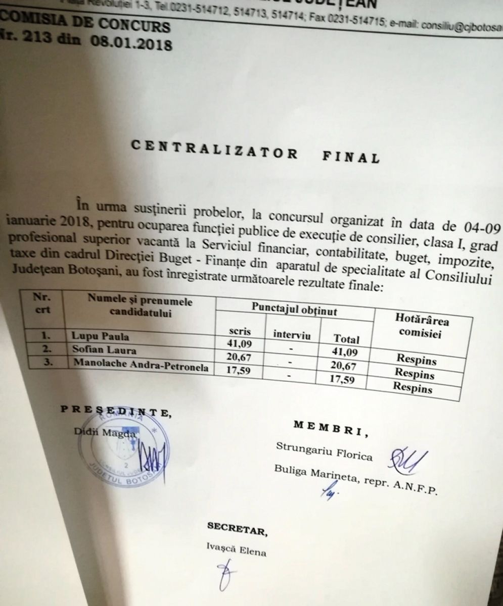 Un nou concurs, aceeași poveste la Consiliul Județean Botoșani: toți candidații sunt prea incapabili și prea slab pregătiți pentru a munci la o instituție de o asemenea importanță.