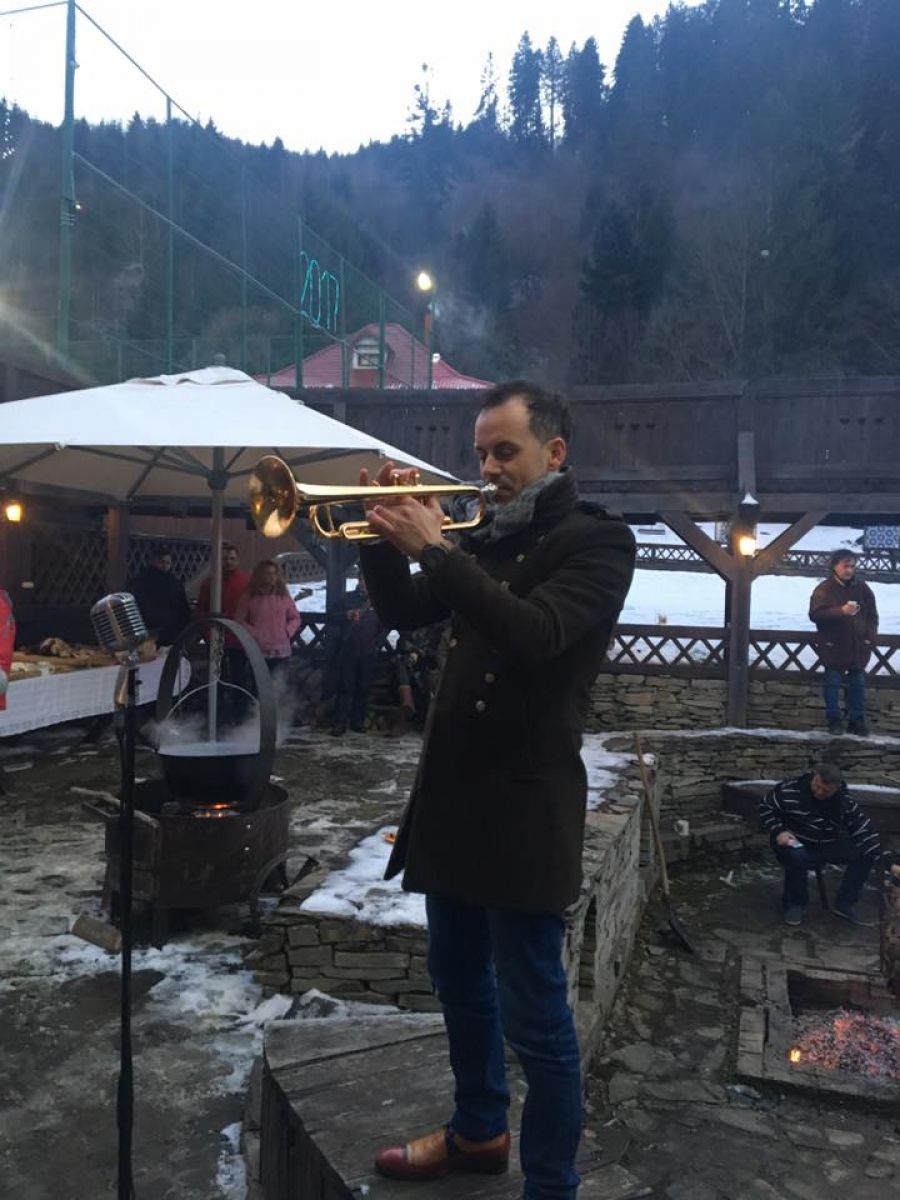 Împreună cu orchestra sa, trompetistul botoșănean se află într-un decor desprins parcă din povești.